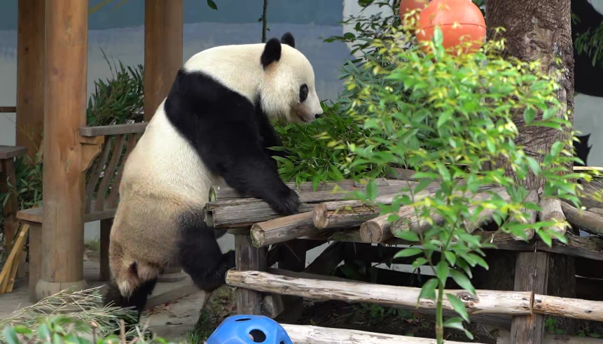 还能去熊猫馆,拜访大熊猫“华荣”,看它萌态可掬,花式整活~👇