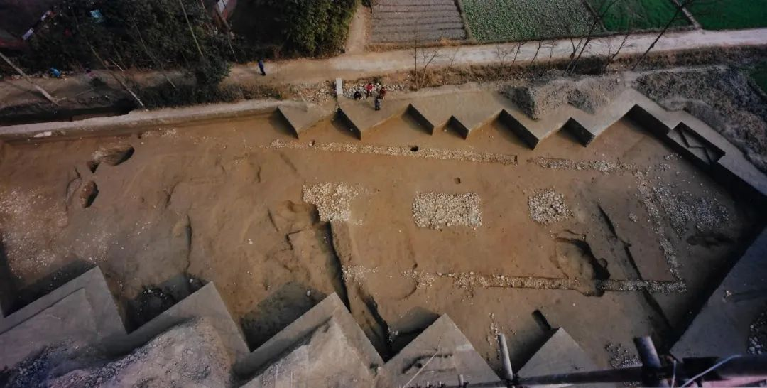 ▲郫县古城遗址发现的大型礼仪性建筑遗迹。图源:成都市文物考古研究院