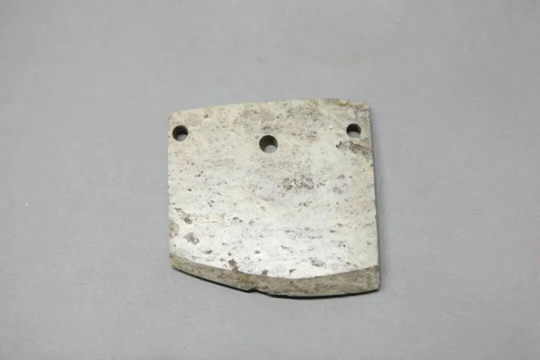 ▲崇州双河遗址出土的三孔石钺。图源:崇州文博