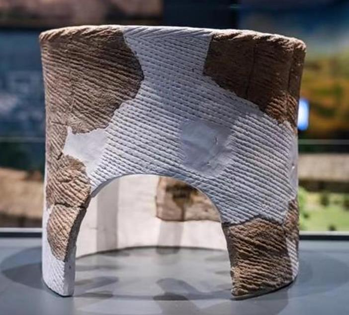 ▲宝墩遗址出土的陶灶是目前成都发现的年代最早的灶,故被称为“成都平原第一灶”,该灶外观呈直桶形,通体饰粗绳纹,内壁等距分布有7个长约7厘米的支丁,一侧有略呈半圆形灶门,高28厘米,直径30厘米。宝墩先民利用陶灶将陶器架高、烹煮食物