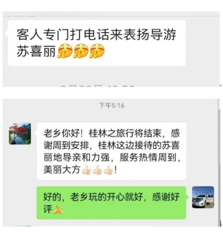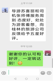 每次收到一个又一个来自五湖四海的客人对我工作的肯定与赞扬时,所有的努力与付出都是值得的。往后我会更加的努力,砥砺前行当一个快乐,并且传递快乐的导游苏喜丽!