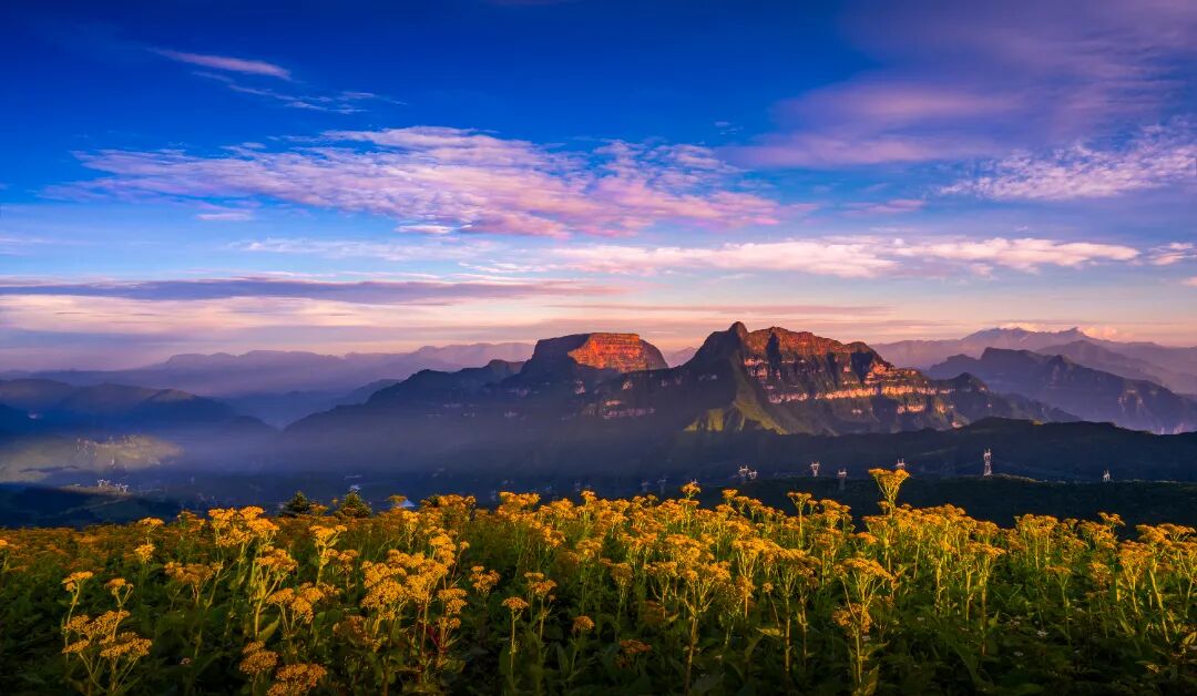 远远望去,大瓦山如突兀的空中楼阁,又如叠瓦覆于群山之巅,与国家森林公园瓦屋山、世界文化自然双遗产地峨眉山遥相呼应,成三足鼎立之势。