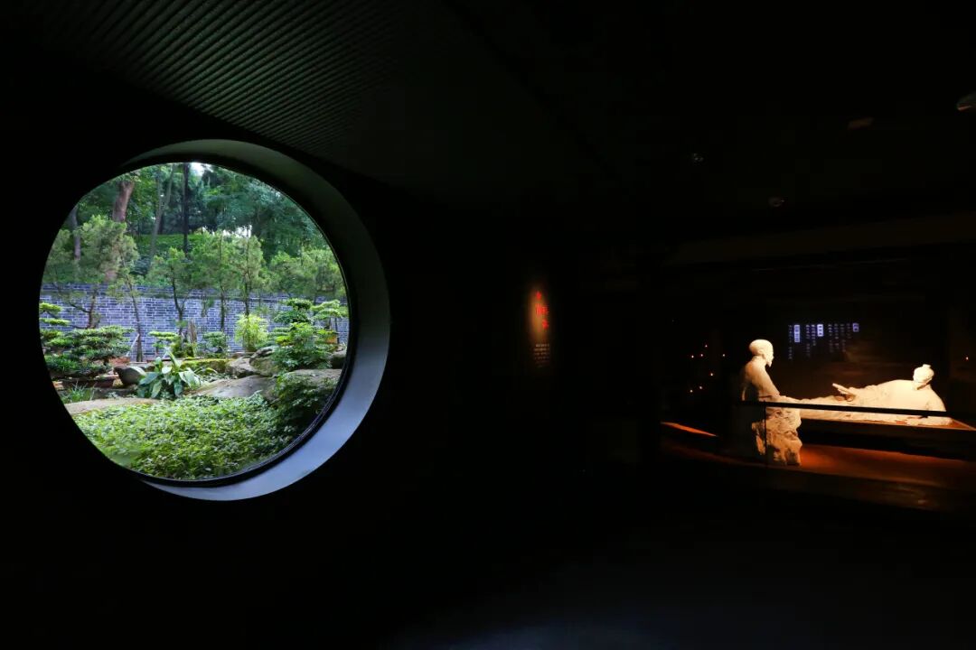 其中,“明良千古——刘备与诸葛亮君臣合展”精品视频中,策展人详细讲述了展览背后的筹备故事。为了更好的融合成都武侯祠原有的祠庙建筑历史园林景观,策展人选择了孔明苑这个开放式的回廊空间作为展厅,中庭以古建筑中的天井作为原型,观众可以获得一步一景的别样体验。如在归葬惠陵展项中,通过特意开凿的圆形玻璃窗户,窗外可以看到刘备的惠陵,窗内则是诸葛亮承先帝遗志的场景。