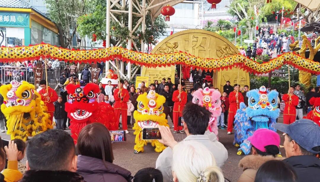 金沙启幕,祥狮登场!启动仪式过后,经典的醒狮高杆踩青表演精彩上演,成为现场最吸睛的环节。祥狮腾跃、灵动起舞,在高杆上完成一系列高难度动作,现场掌声、欢呼声此起彼伏,游客们纷纷拿出手机记录这一喜庆瞬间。