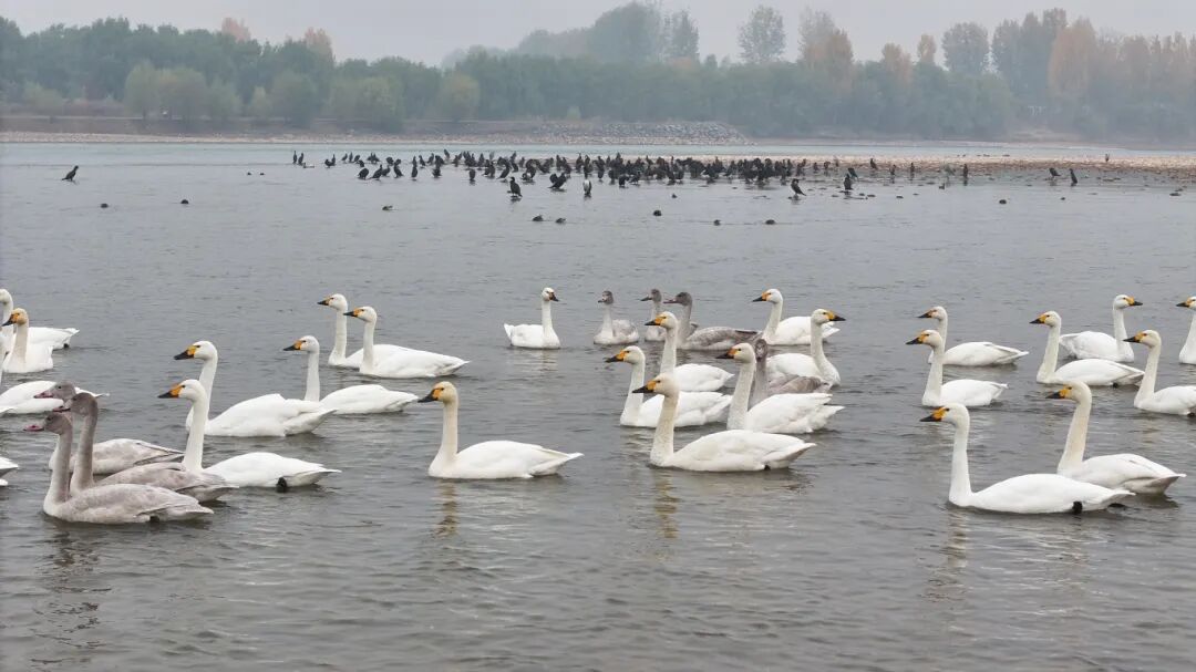 鸟种:白琵鹭、大天鹅、豆雁、红头潜鸭、绿翅鸭、普通鸬鹚等
