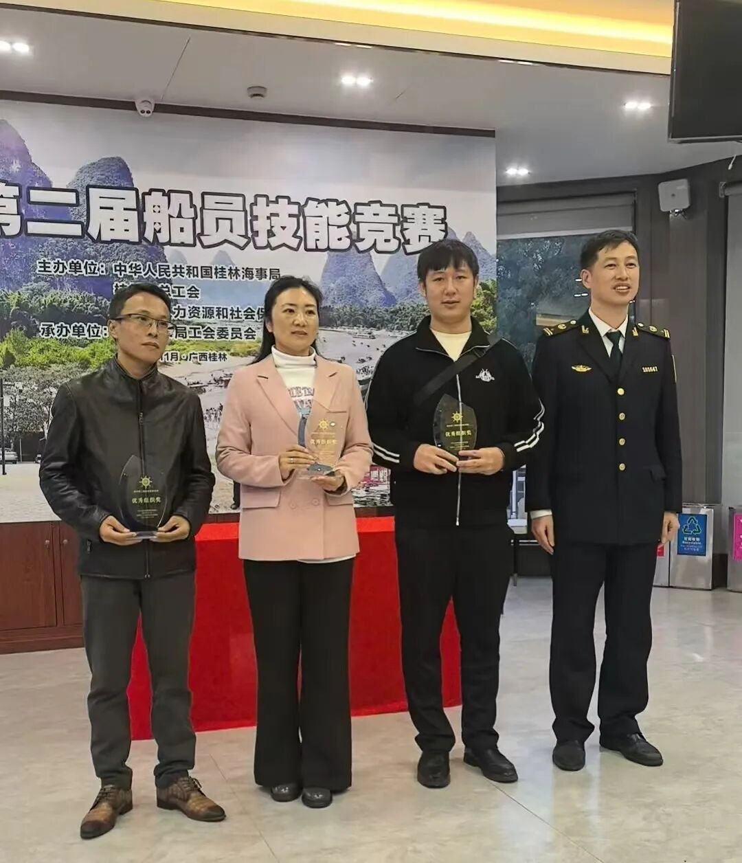 2025年11月4日下午,桂林海事局、桂林市人力资源和社会保障局、桂林市总工会联合举办第二届船员技能竞赛,市内游公司选派4名船员组成代表队参赛。