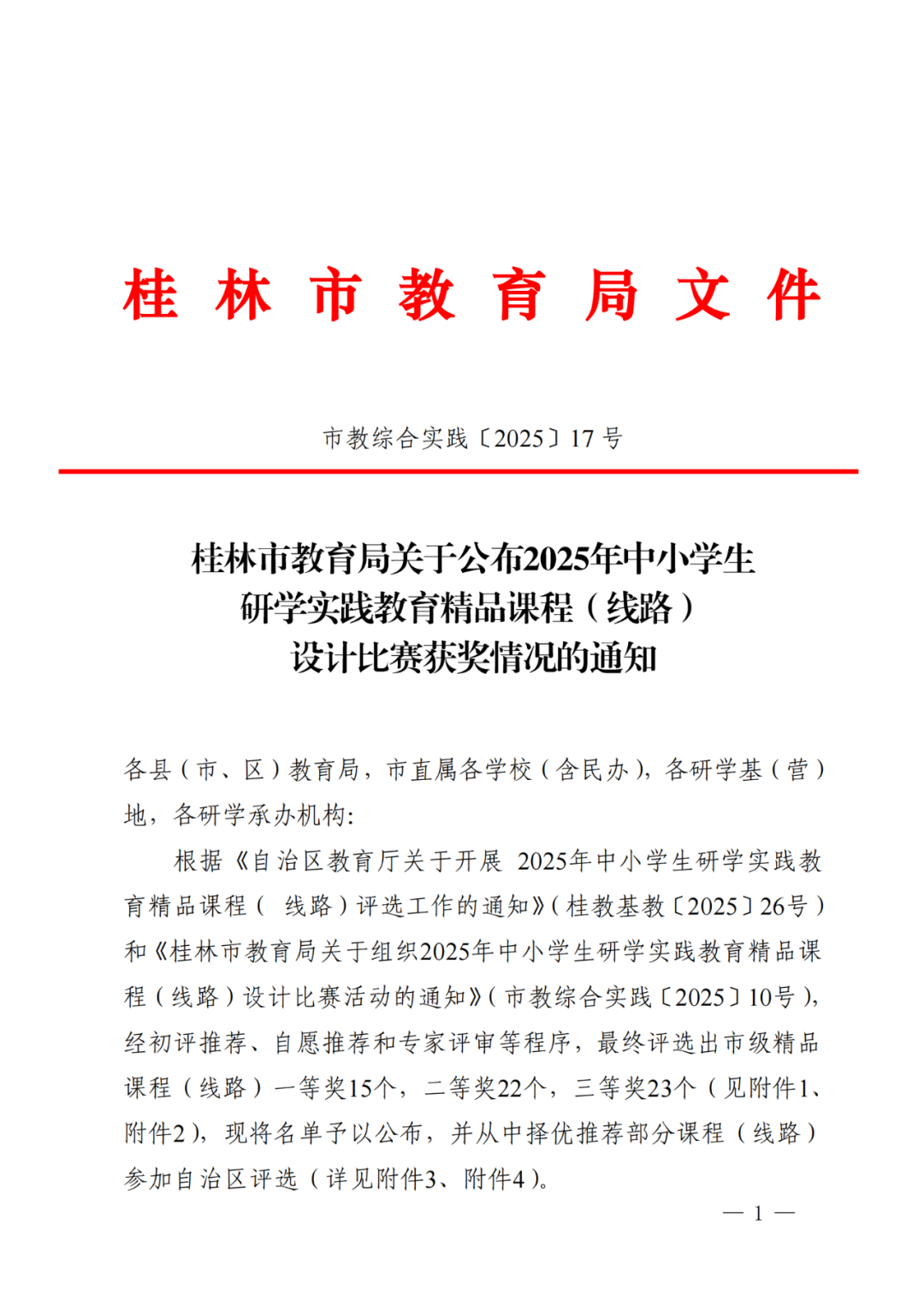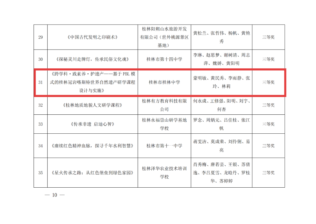 近日,桂林市2025年中小学生研学实践教育精品课程(线路)设计比赛获奖情况正式揭晓,桂林市桂林中学联手冠岩地下河喀斯特研学基地共同打造的、适用于高中阶段的喀斯特研学课程《跨学科·践素养·护遗产——基于PBL模式的桂林冠岩喀斯特世界自然遗产研学课程设计与实施》,凭借沉浸式的实践设计与深度的学科融合,成功斩获三等奖,为桂林研学教育注入鲜活力量!