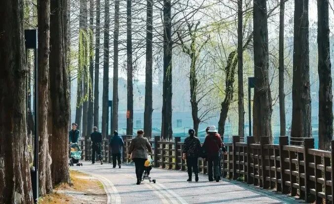 坝坝茶座与锦江之间幽长而清爽的绿道,那是大爷大妈、一对对情侣们散步和闲逛的最爱。当然了,推着小车车儿带着孩子来玩的年轻妈妈,以及其他各色人等到此一游的也不在少数。绿道上叫卖“豆花儿”“热糍粑”“凉皮凉面”的流动摊贩,让大家可以更方便地品尝美味小吃,平添了人间烟火气。