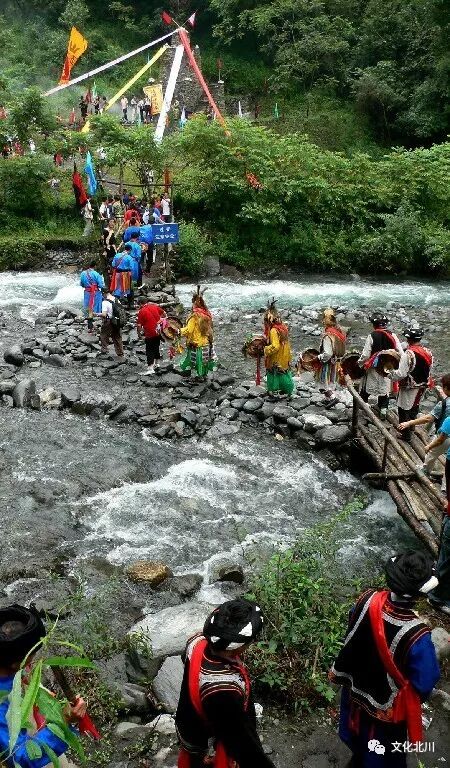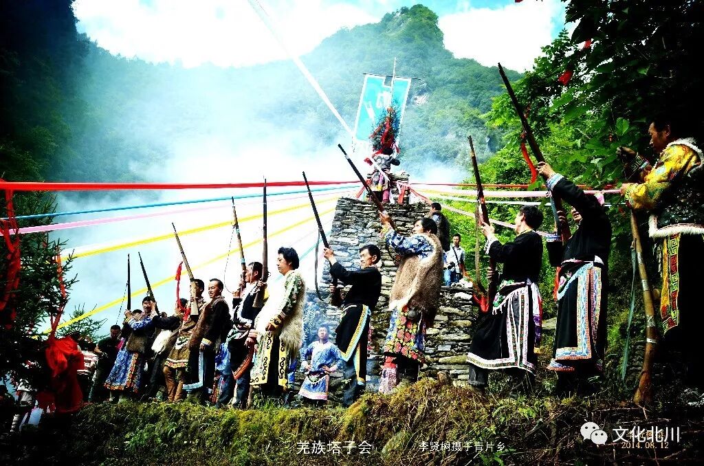 转山会是羌人延续了几千年的盛大民俗文化活动,于每年夏季举行。转山会又称祭山会、塔子会或者碉碉会,是羌民族祭祀天神、山神、羊神,祈求人畜兴旺、五谷丰登、地方太平、森林茂盛然的大典。祭祀期间,除已婚妇女不参加外,参加祭祀的人都要带上酒、肉和馍去赴会。会首由当地住户轮流担任。届时,会首要备好一只白公羊、一只红公鸡、一坛咂酒、三斤猪肉、一斗青稞、十三斤面做的大馍和香蜡、爆竹、纸钱等,按规定摆好,由端公主持祭祀,祈求天神和山神保佑全寨人寿年丰,并将山羊宰杀后煮熟,连同其他食品分给各户,称“散分子”。最后大家席地而坐,互相品尝各自的祭祀食品。活动一般在一块专供祭祀的空地上举行,以高达近3米的石塔为中心,气氛肃穆而神秘。首先是神色庄重的端公身穿蓝光闪闪的法衣,手执法器,在他的带领下,手持柏枝、青蒿,怀着虔诚的众多男子走向烟雾缭绕的神塔,五色的飘带飞向天空,他们口念经书,把心中的企盼与感激说给心中的众神,充满祈祷和祝福;紧接着杀羊还愿,羌人以羊为图腾,尚白,被选作牺牲的公羊纯洁无比,它被人装扮一新,献祭给神灵;随后举行隆重的礼仪,其间伴随震撼大地的火炮,抛向空中的红带像上升的心愿,人们绕塔而行,高唱祭歌,参加祭山的男子手捧清凉甜美的咂酒,敬献给唱歌人。祭祀结束后,便进行精彩的文艺表演、服饰展示、传统体育“推杆”、“抱蛋”、“筛糠”等竞赛活动。晚上,大家围着熊熊燃烧的篝火,弹起悠扬的口弦,跳起雄健的沙朗。