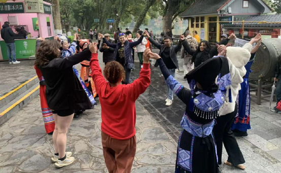 当探访团到达两江四湖,体验到多姿多彩的互动,开启了水上桂林文化之旅。码头邂逅民族快闪,歌声与舞蹈热情洋溢;搭乘国潮风游船,穿越古今,拍照打卡意境满分;体验传统乐器,在音律中触摸文化脉搏;观看鱼鹰捕鱼表演,感受人与自然共生的智慧。