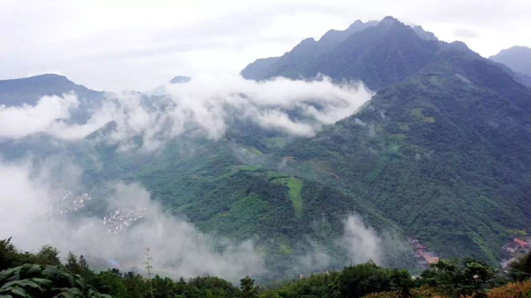 汽车过了隆兴场接引殿(老雾山乡政府所在地)约1.5公里许,即在一山围四合的雾山河边停了车。大家迅速下车,扛上摄像机随着向导前行。熟悉当地情况的向导指着四周合围的青翠山峦告诉我们:“这就是闻名遐迩的风景绝佳地青霞嶂。你们看看,这四周的青山是不是像座座绿色屏障?”我们举目四望,果然是群峰险峻、翠屏环绕,天蓝水碧、景色优雅,活脱脱一幅丹青水墨画!