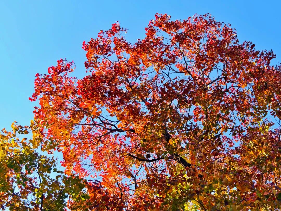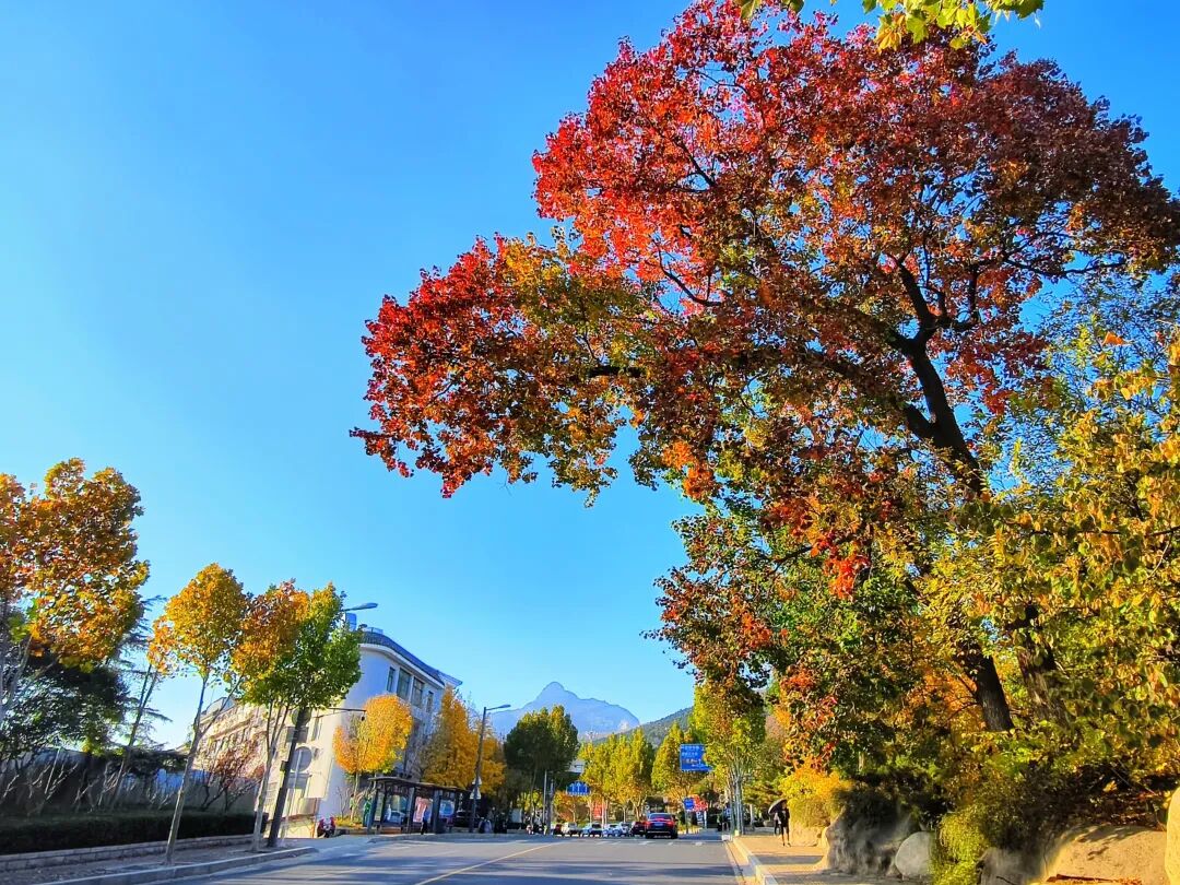 初冬的泰山,大部分树木已褪去秋装,唯有一株高大的乌桕树在环山路旁绽放着最浓烈的红色。这抹红色不同于枫叶的斑斓,而是一种沉静而温暖的橘红,勾勒出独属于山城的冬日诗意,让往来行人沉醉其间。一树红叶,一树诗,泰山环山路的乌桕便是初冬限定美景。这片红色已成为近期游客争相打卡的“网红”景点。清晨的阳光穿透叶片,乌桕红叶呈现出半透明的质感,脉络清晰可辨;午后,叶片在蓝天下红得更加热烈;待到夕阳西下,整棵树仿佛被镀上一层金边,美得令人屏息。“乌桕赤于枫”,正如南宋诗人陆游所赞,其红艳更在枫叶之上,是一种更为沉静和持久的绚烂。枫叶的红 “奔放而绚烂的” ,而乌桕的红则是 “内敛而醇厚的” ,像一杯暖茶,余韵悠长。乌桕叶形似菱形,叶尖细长,红起来从叶缘向中心逐渐蔓延,最后整片叶子都沉浸在深红的色泽中。叶柄处还保留着些许黄绿色调,与红色部分形成自然渐变,如同大师精心调配的色板。历代文人墨客对乌桕的偏爱有加,明代的王象晋在《群芳谱》中写道:“乌桕树,秋晚叶红可爱,较枫树更耐久。”道出了乌桕胜过枫叶的关键——红得更久。乌桕树不仅以红叶装点初冬,叶落之后还会挂满串串白色的乌桕籽,“前村乌桕熟,疑似早梅花”,为冬日的泰山增添另一番风韵。供稿:红门管理区