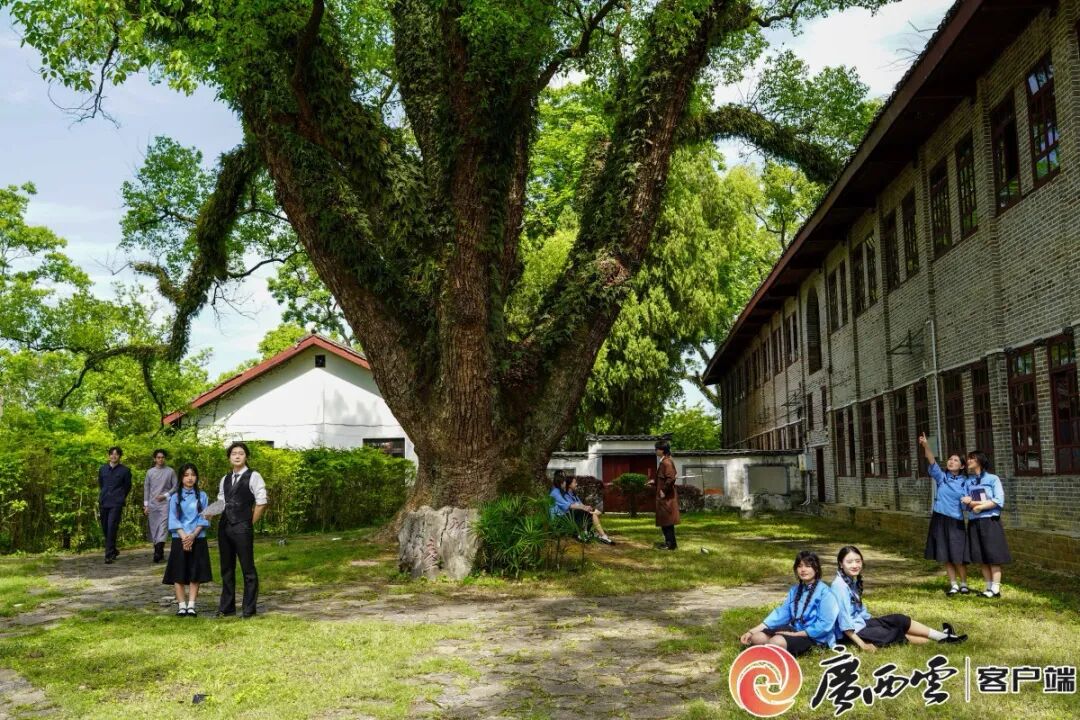 国庆期间,雁山园景区工作人员身着民国时期服装,为游客再现当年学子们在古榕树下学习场景。雁山园景区供图