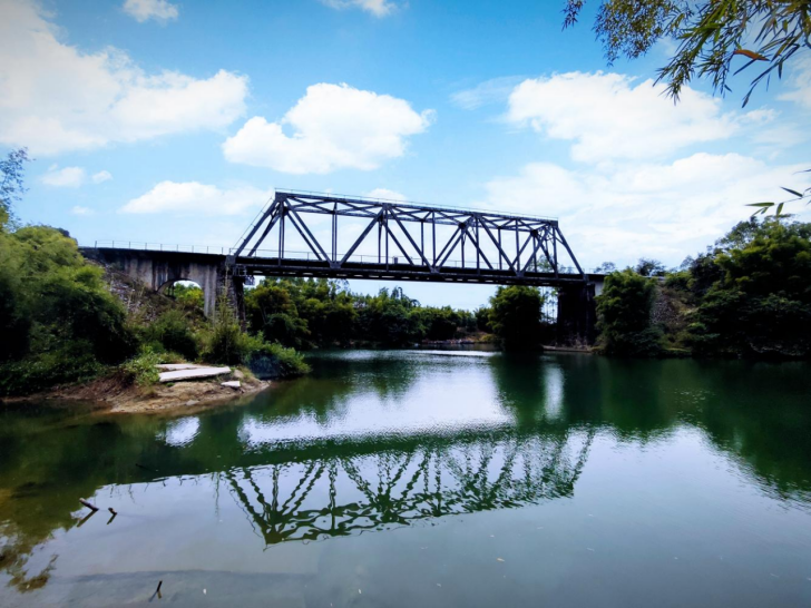 这座具有历史意义的铁路桥,属于湘桂铁路,建于1938年,见证了时代的变迁。它犹如一位沉默的守护者,屹立在江上。走在浪江边,感受钢铁的坚实与历史的厚重,可以想象当年火车呼啸而过的场景。