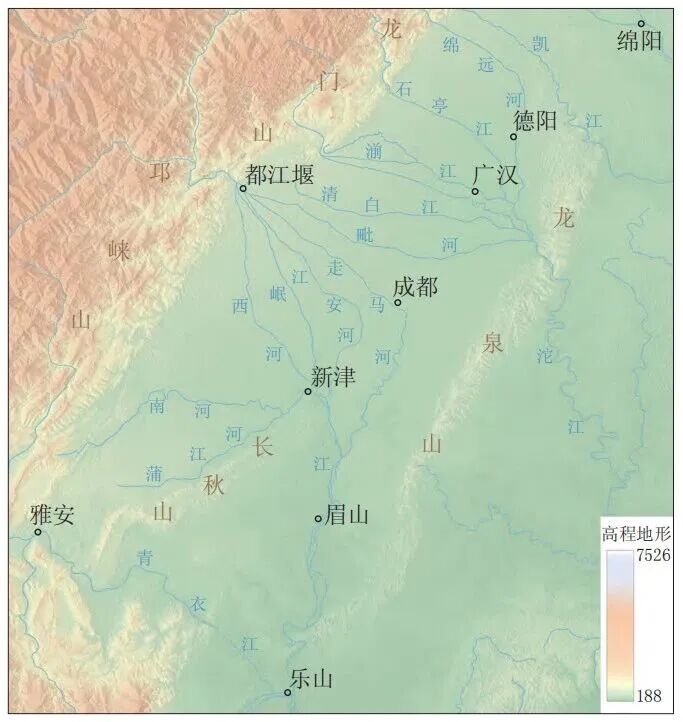 成都平原地形图(图源中国社科院考古所中国考古网)