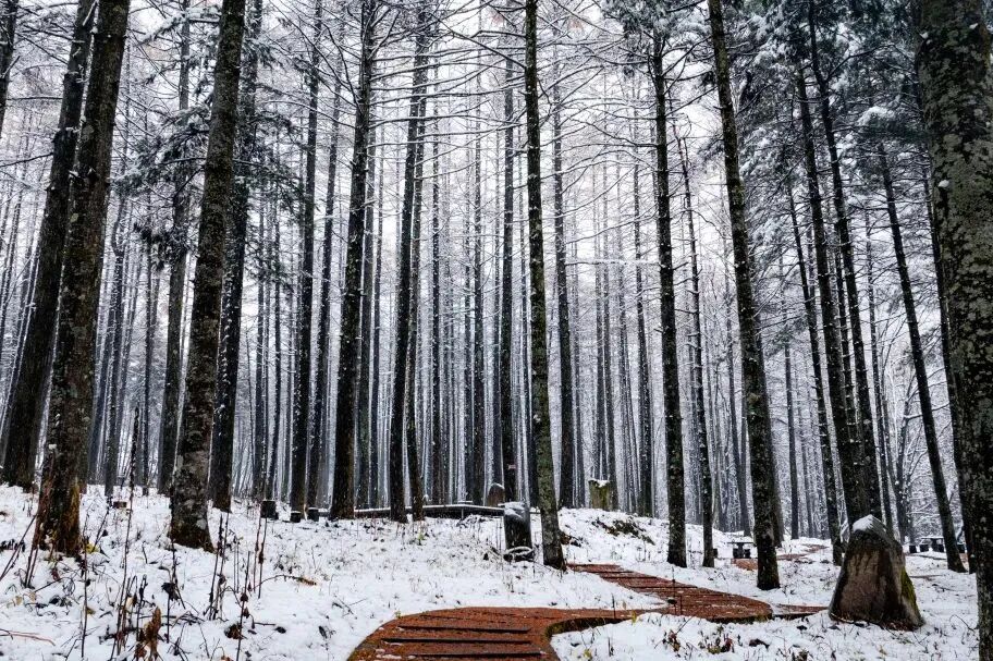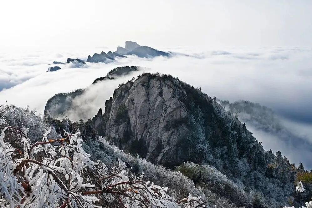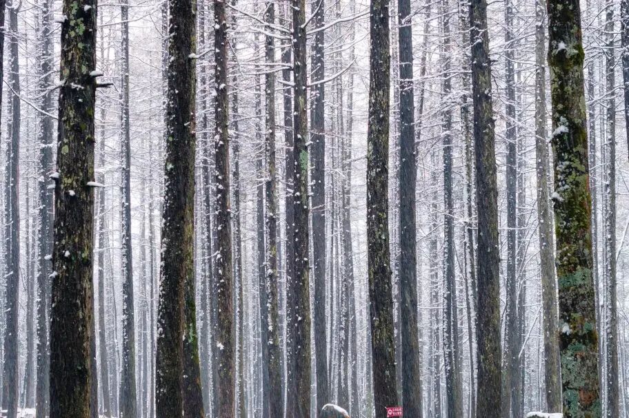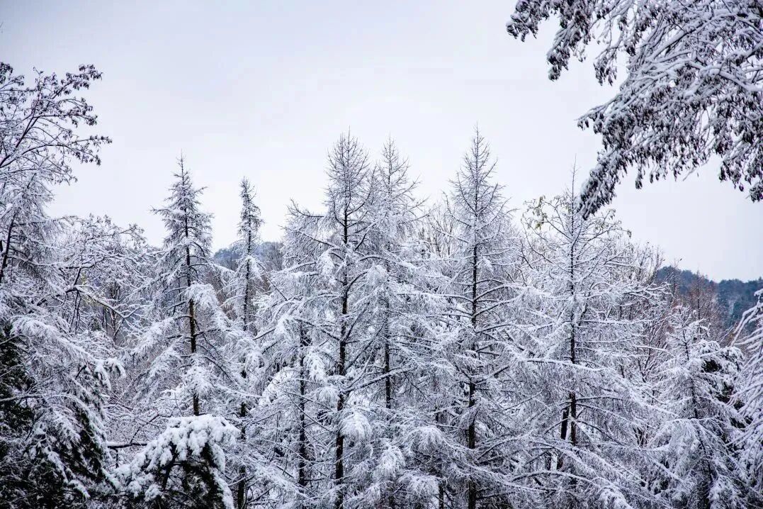 在白云山森林氧吧,银装素裹的树木间,千形万状的树木奇景美得仿若“仙境”。它们或亲昵地簇拥成群,似在彼此分享着冬日的密语;或遗世独立地静立,独自守望着苍穹,用澄澈与晶亮拥抱着整个天地。