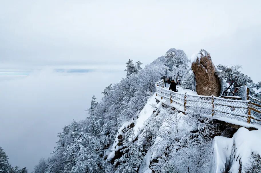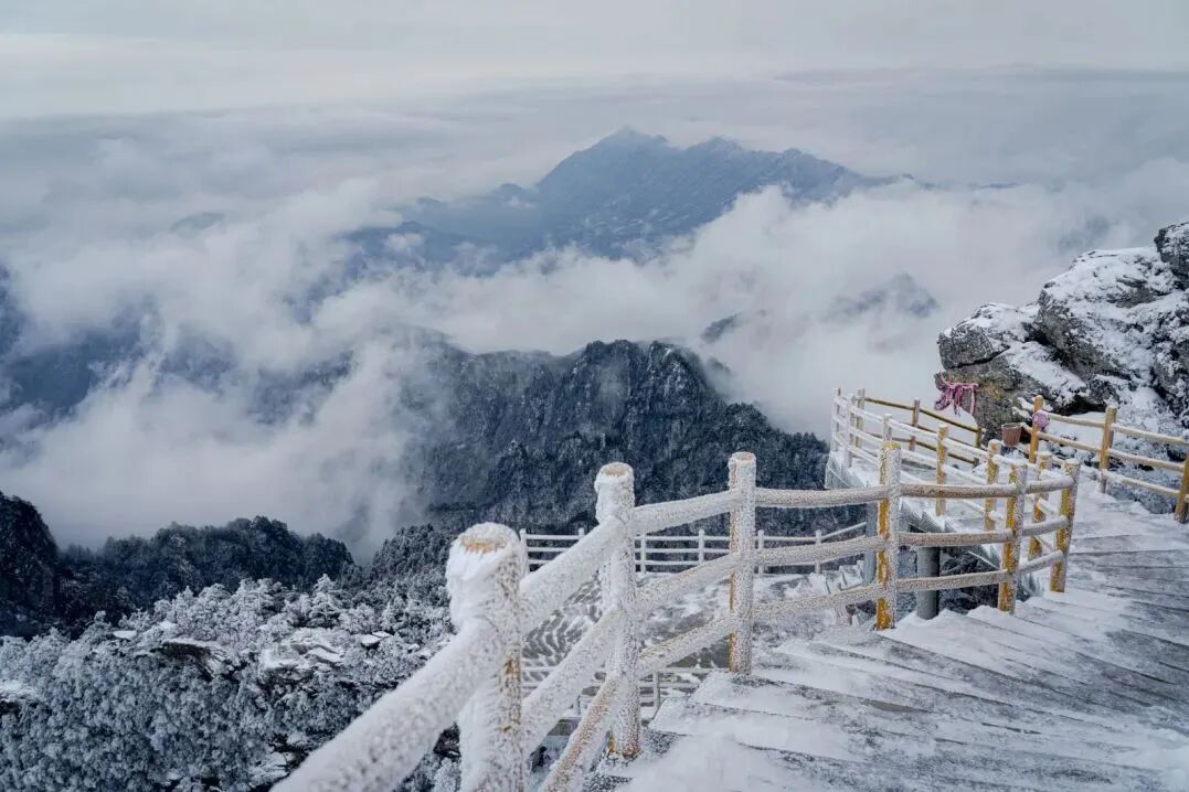 在玉皇顶区域,通向山顶半山腰的步道,无疑是赏雾凇的绝佳胜地,备受游人的青睐与追捧。