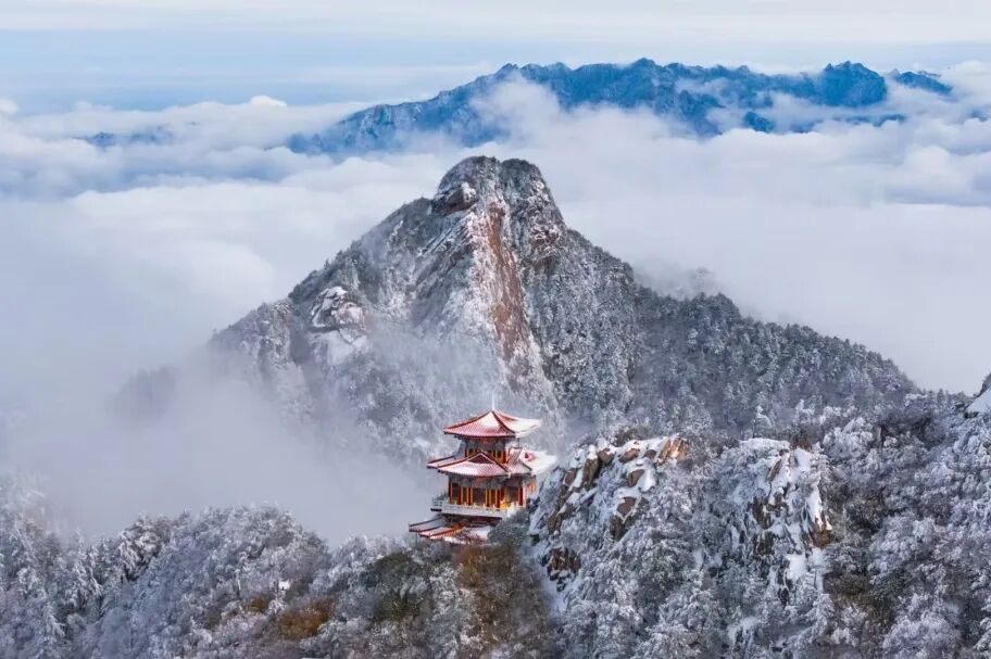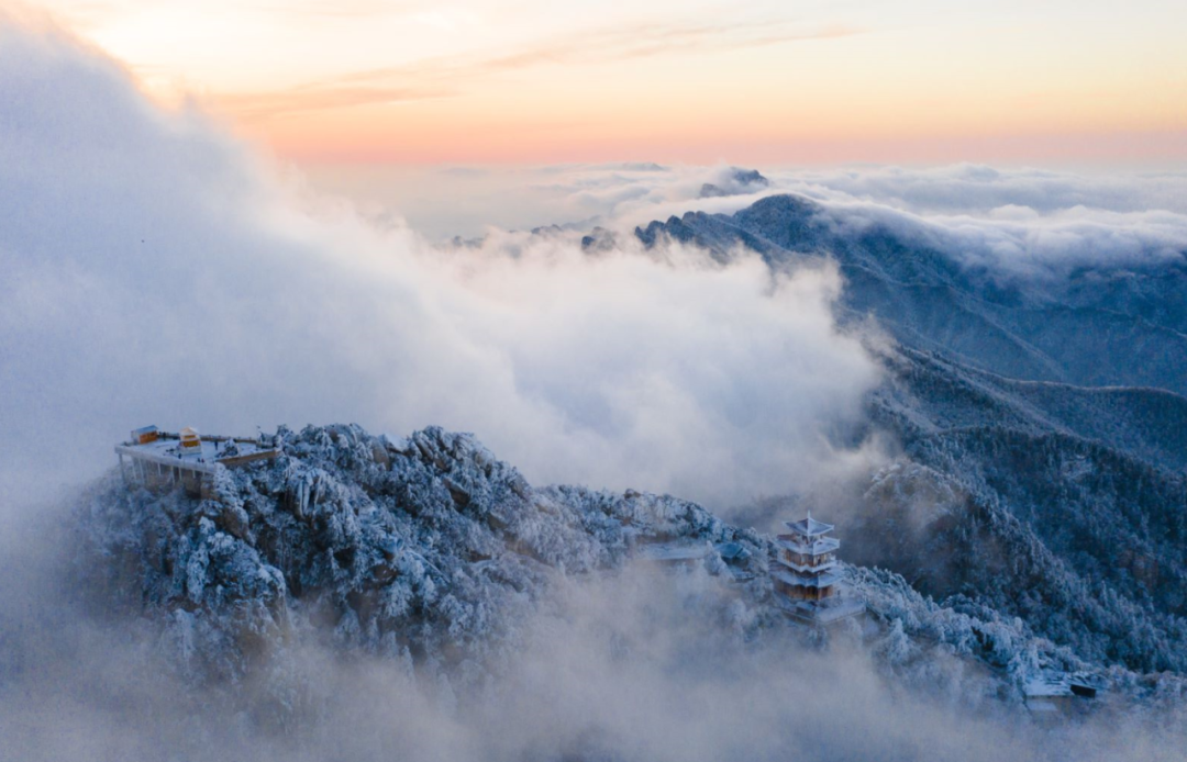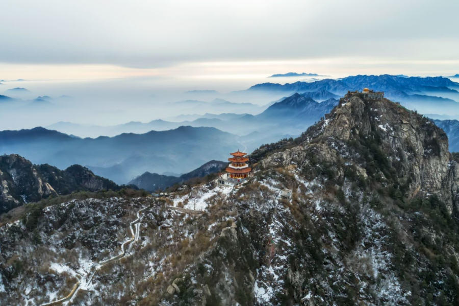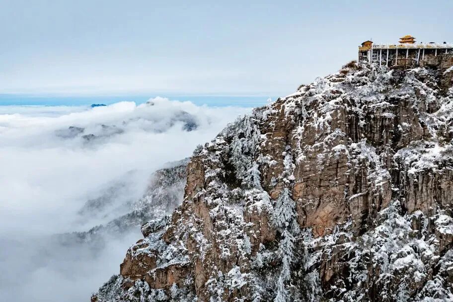 当立身于此,向下俯瞰,一种对于自然与时间所达成的奇妙默契的惊叹之感,会油然而生。大自然挥斥方遒,在八百里伏牛山脉间洋洋洒洒绘就出一幅北国风光、千里冰封的山水画。