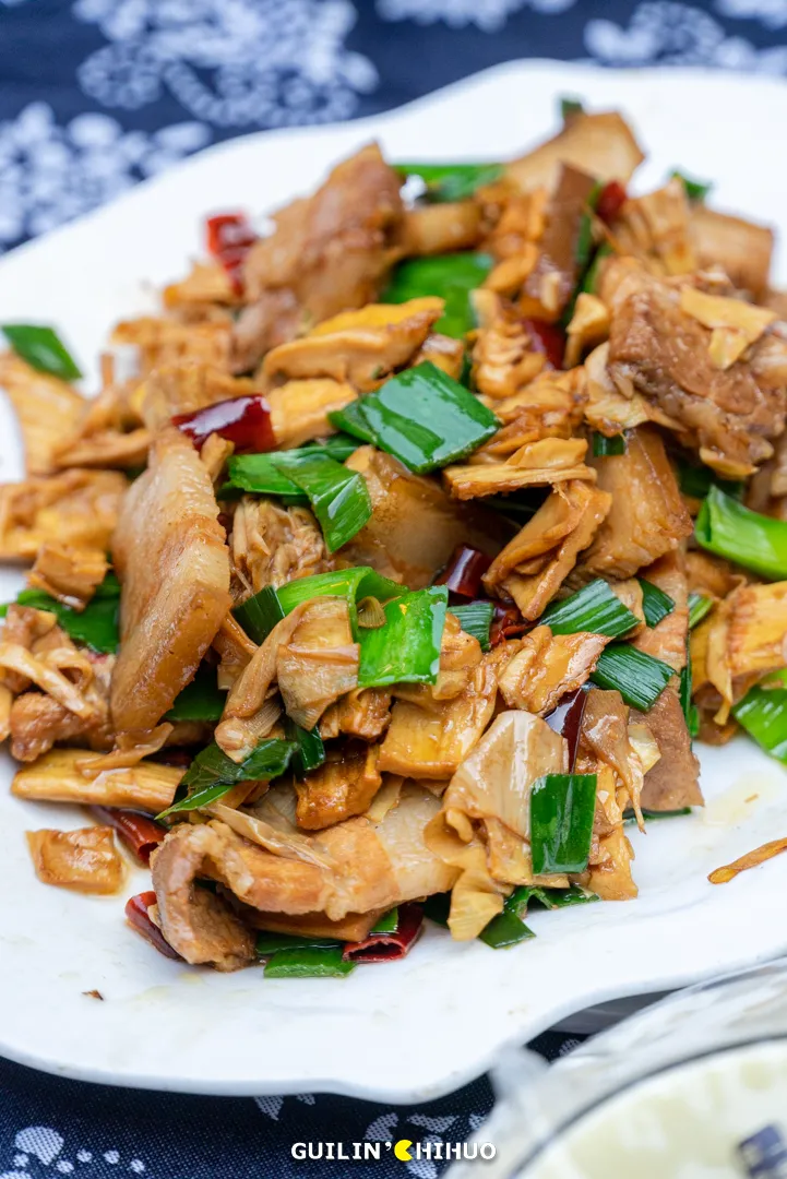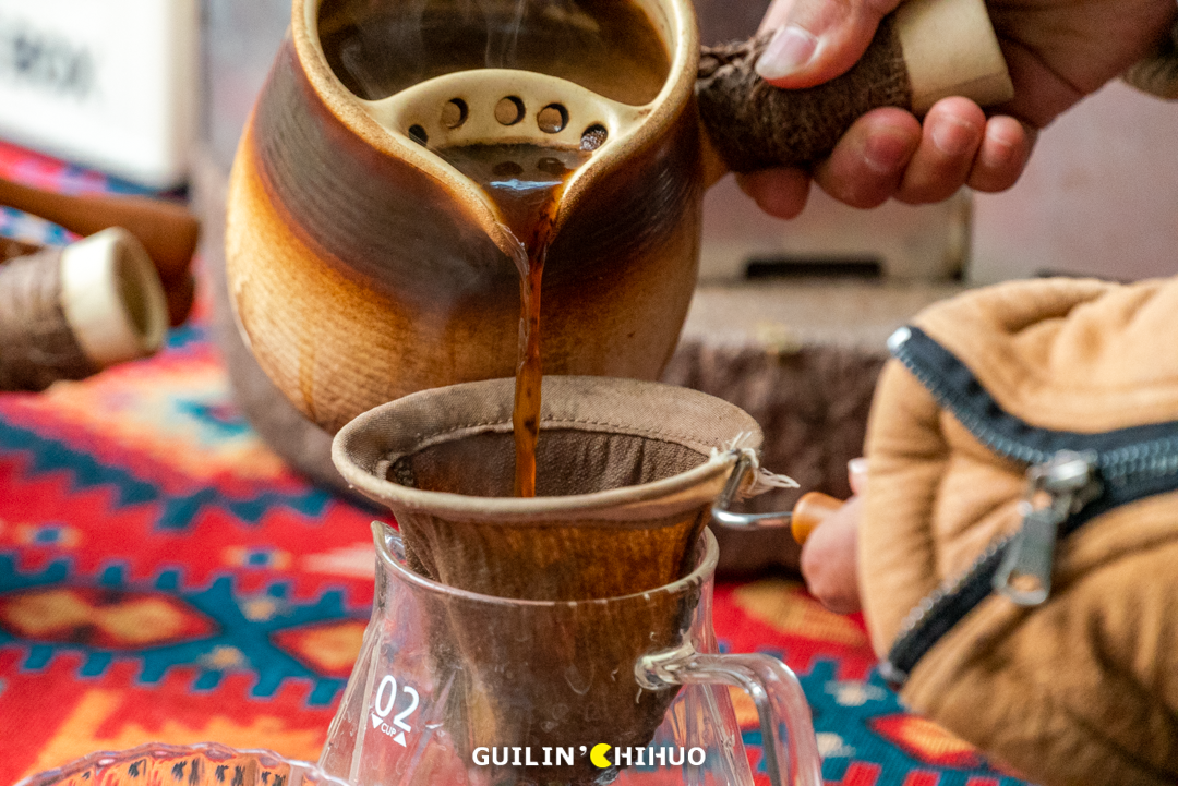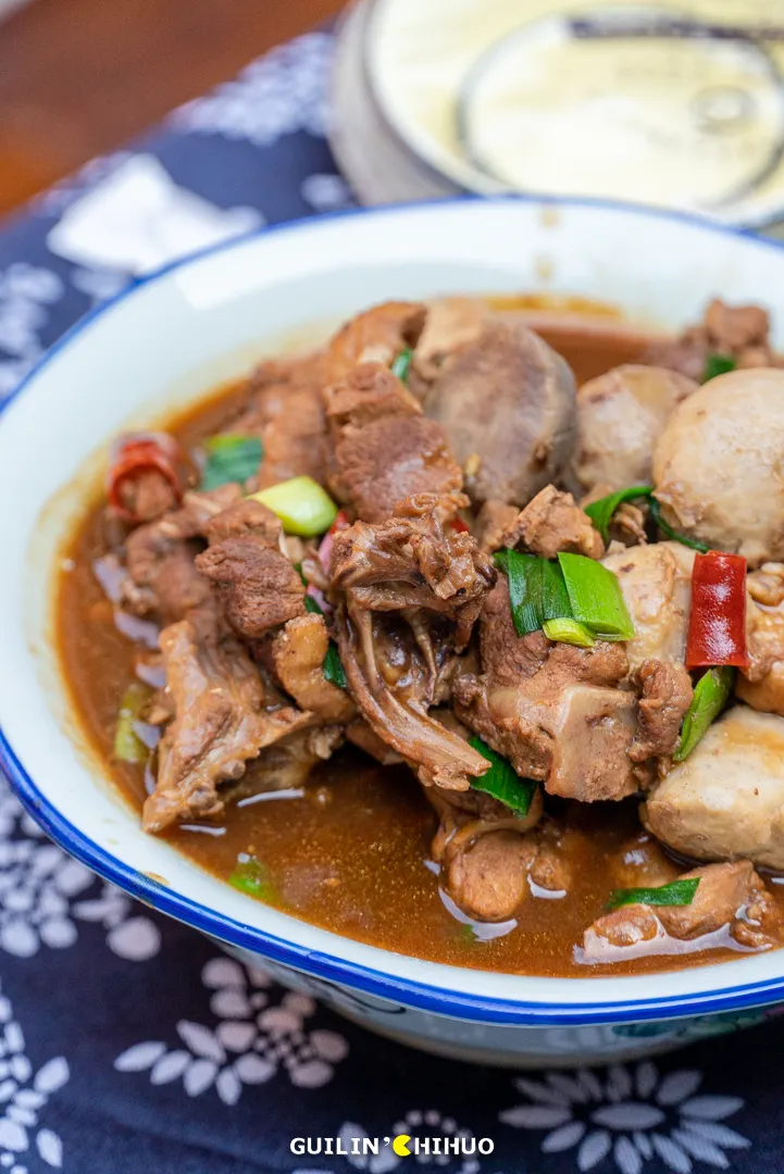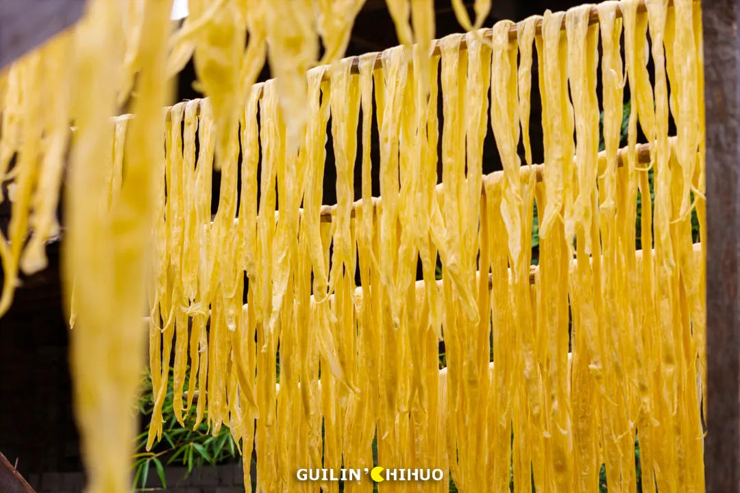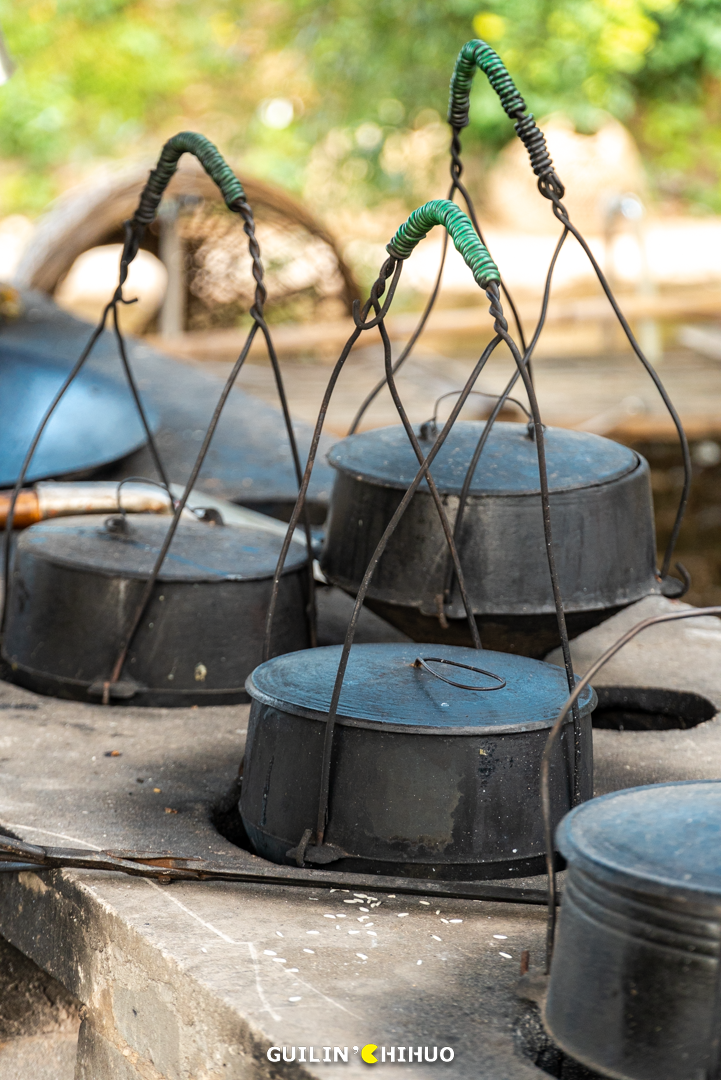位于灵川县大圩镇的东漓古村,桂北一处活态的漓江传统文化艺术村,一直被大家贴上“宁静古村”、“世外桃源”、“徽派建筑”等等标签。其实,经过这一次实采,我们发现!其实这里真的超适合遛娃、团建!玩法多得一双手都数不过来!平常只觉得腐竹好吃,是不是从来没见过腐竹是怎么做出来的?这次不仅可以见到,还可以亲手体验一把~在大概70℃至80℃的豆浆里,一手捏住豆皮的一角,迅速拉起,另一只手则扶着打辅助,自上而下形成褶皱,挂到锅上方的架子上。看似简单,其实整个过程两只手要协调得好,动作也要快,平常没做过的,确实算是玩了个新鲜~非转基因的黄豆做完了腐竹和豆浆,豆渣还能用来DIY饼干,用磨具印出可爱的形状,再放入烤箱里烤。每张套票里包含1份小饼干给大家品尝,烤箱烤制时间比较长,不想等待的可以直接带走1份小饼干尝尝~小饼干吃起来酥酥的,满口腔都是清爽的豆香,令人回味。(ps:小饼干上的小黑点就是豆渣哦,那是非转基因黄豆才会有的)园区还保留着当地古村落原始的耕作区域,一些城里孩子没有见过的农耕过程,在这里都能看见。利用人类智慧结晶的工具,舂稻谷、灌溉,体验了另一种人生,感受中华农耕的神奇与魅力,体会一分耕耘一分收获的真谛。几个人同时使出吃奶的劲儿,才能挥舞得起来的大飞锤,让我们体会到了每一滴油都来之不易。石碾,在还没有机器磨米磨面的年代,用来加工粮食的石滚与石盘的组合。推碾子,曾经是家家必不可少的劳作,是一种烟火生活的前奏。现在在城市里鲜少见到了,所以偶尔来体验一下,也是满满新鲜感。现在39.9的套票,还包含一杯手磨咖啡,石磨转动,咖啡粉缓缓而出,自己体验研磨的快乐。碳火慢煮,咖啡香气缓缓被逼出,温度达到90℃的时候口感最佳。倒出一杯美式,可在庭院慢品,也可以到得月楼里坐坐。