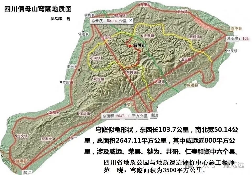 威远穹窿,是迄今为止发现的世界上面积最大的穹窿,自然生态良好,山水风光独特,人文历史悠久,铁盐文化深厚,堪称世界奇观。著名地质学家李四光曾指出,我国有个著名的“威远穹窿体”。它是四川唯一三叠纪地质整体出露区域,为全球规模最大的穹窿地貌区。
