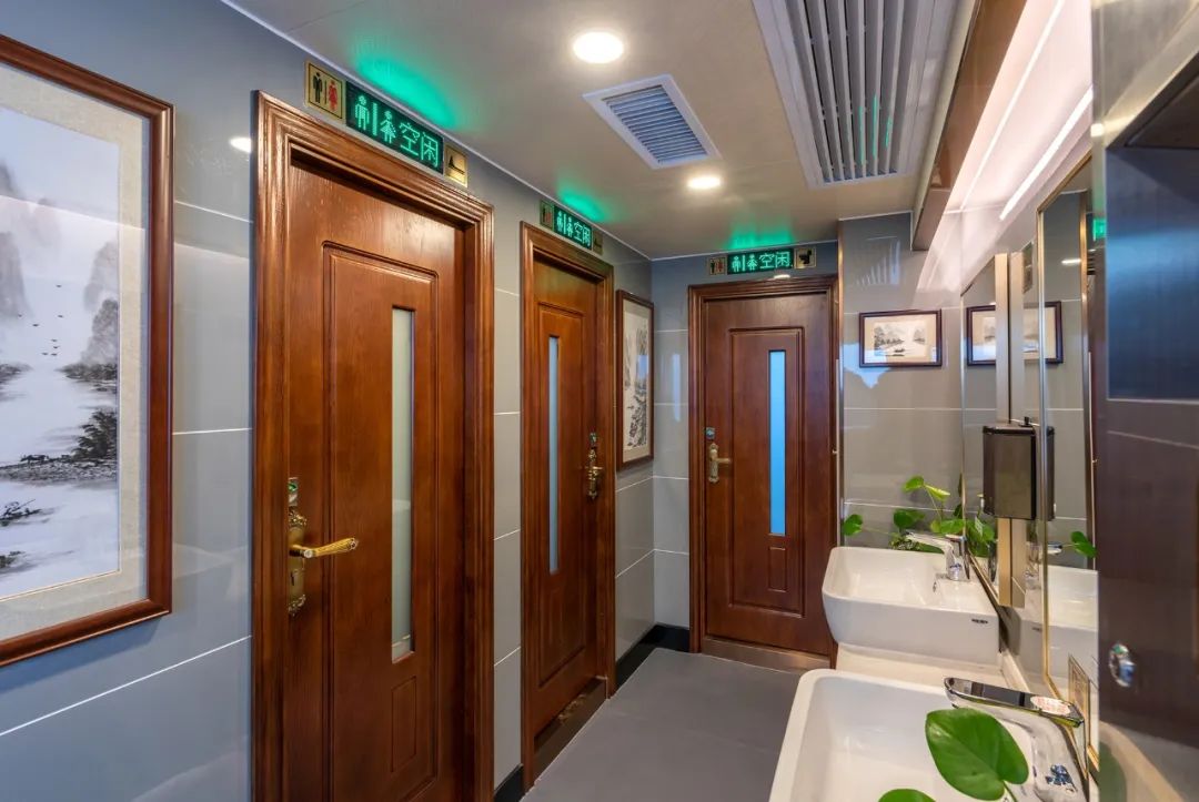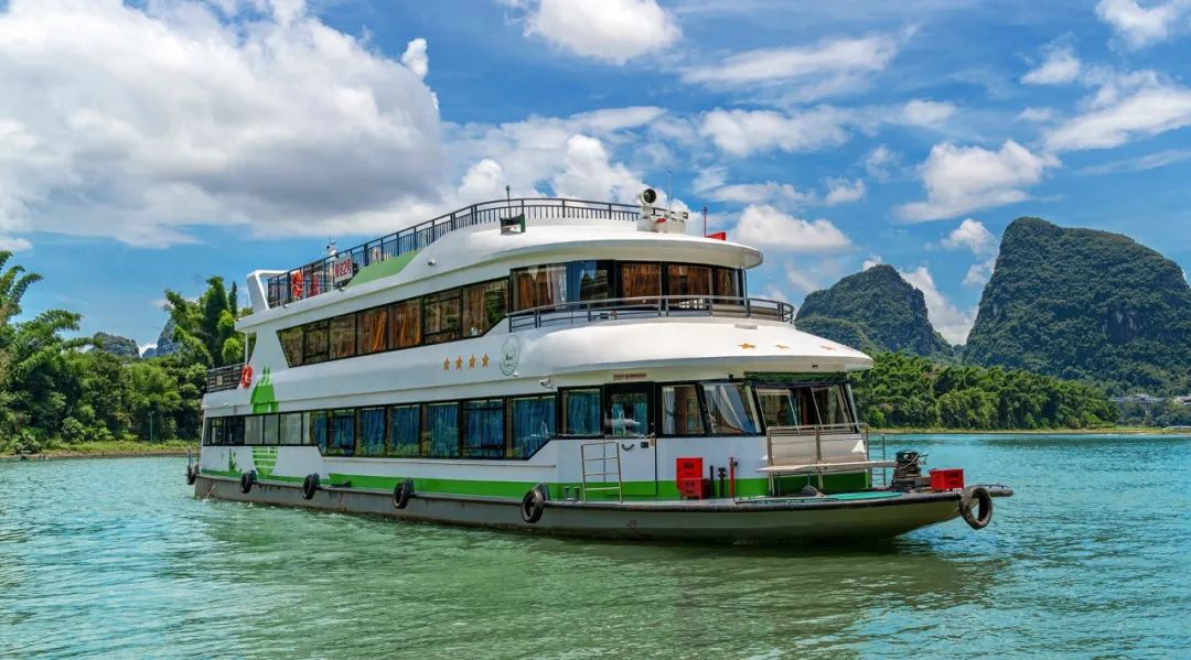 漓江游船全新提档升级,综合考虑游客的游览体验和心理预期,对提档改造游船的客舱人均面积、游客座椅规格、客舱餐桌规格、游步甲板人均面积做出严格的规定,且采用布艺或真皮敷设的软包沙发,舒适度和美观性对比普通游船均大幅提升。并对游船的客舱地板、天花板、客舱壁板、餐桌等装饰装修做出高材料标准要求,对于窗帘、桌布等装饰物的换新期限做出明确规定,给游客创造了高端雅致的观景环境。卫生设施全高配,人性化细节设计面面俱到。