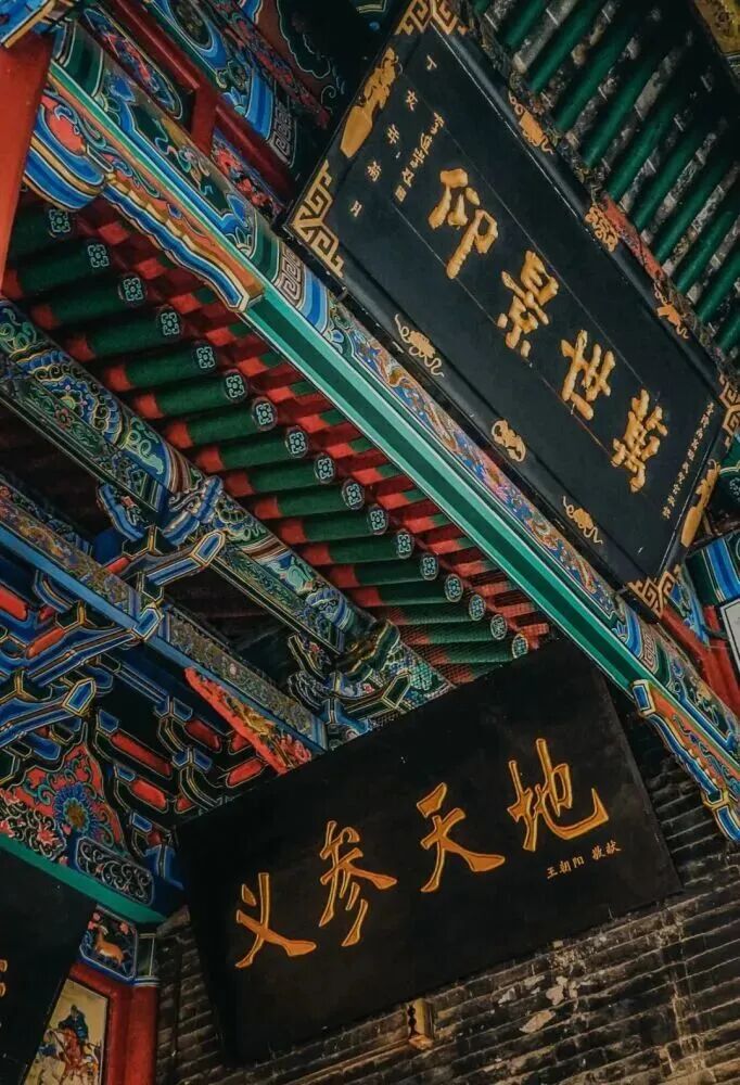 关林拜殿上悬挂的部分匾额,彰显了关公崇高的地位,其中“声灵于铄”匾和“翌汉表神功龙门并峻,扶纲伸浩气伊水同流”的对联,是乾隆皇帝御书;而正殿门上的“气壮嵩高”匾,书体端庄大气,为慈禧太后亲提;财神殿门额上,悬有光绪皇帝手书的“光昭日月”匾额... ...