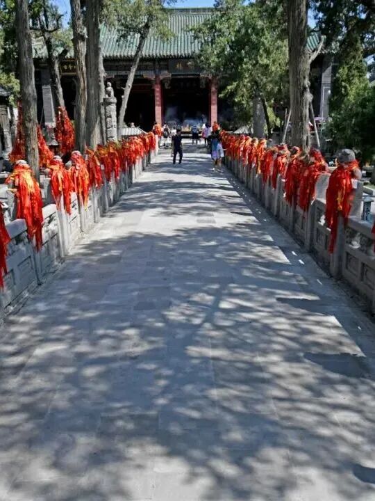 数百年来庙宇从最初的简朴小筑,经多次扩修,逐步形成了如今三进两院、布局严整的建筑群。拾级而上,山门、前殿、正殿等建筑次第展开,红墙黄瓦在阳光下熠熠生辉,更有栩栩如生的砖雕点缀其间,静诉着岁月与匠心。