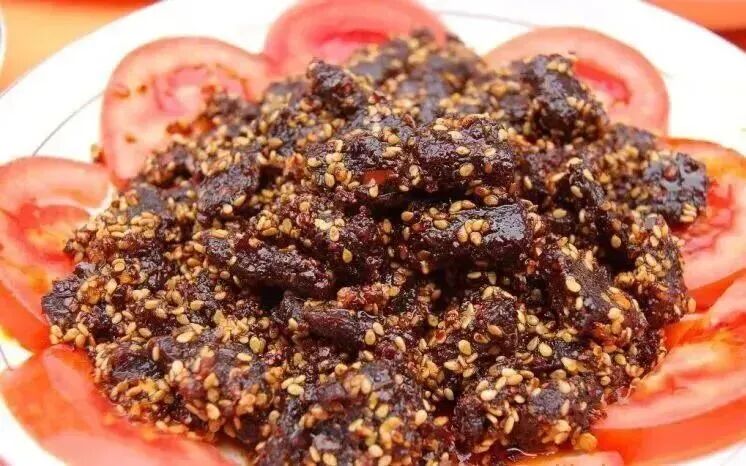 回民街巷子里,黄牛肉用果汁腌透,被炸至酥脆如青铜器上的金箔。入口先甜后麻,果汁牛肉里,藏着回汉共居的智慧。