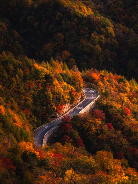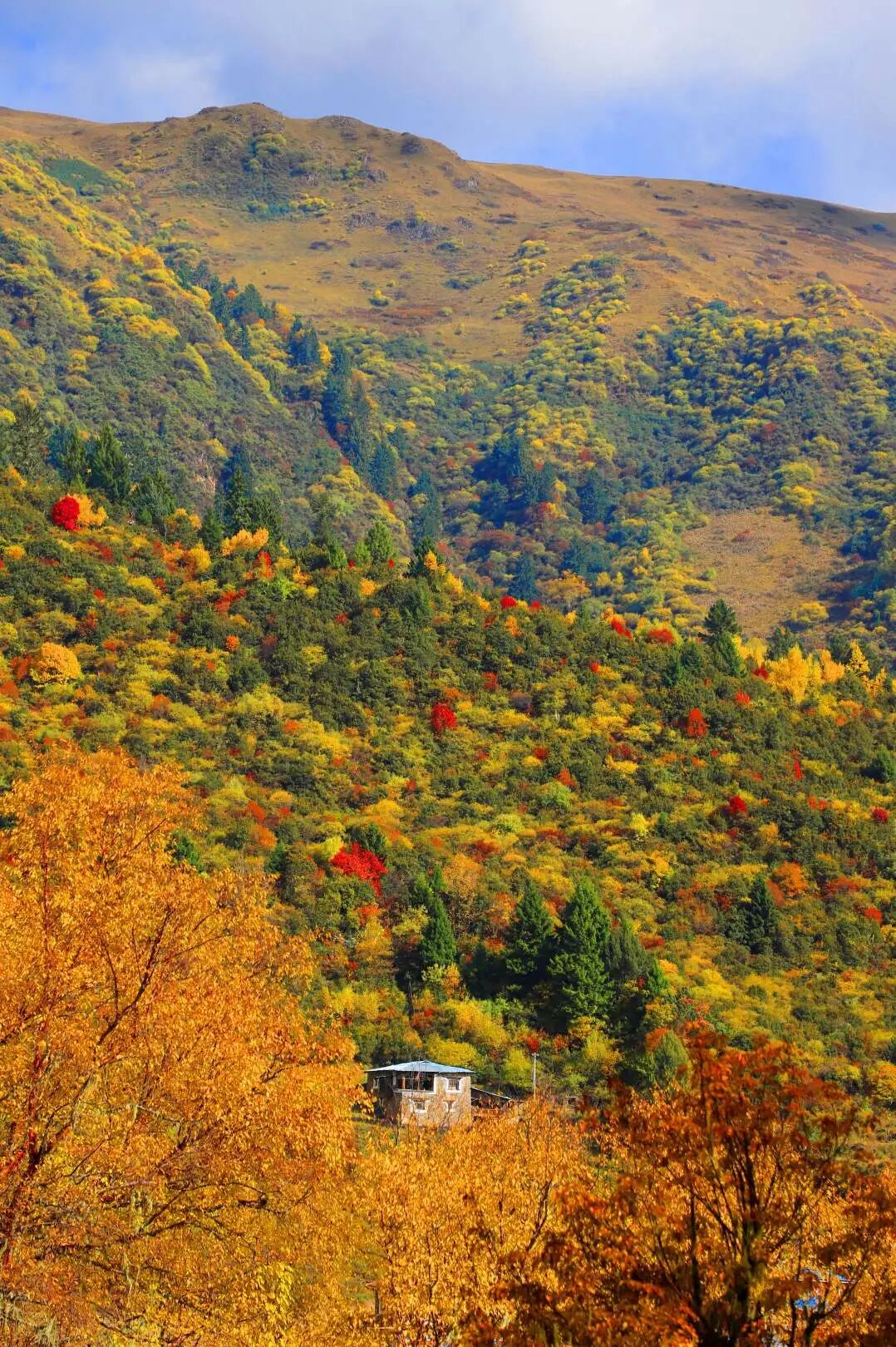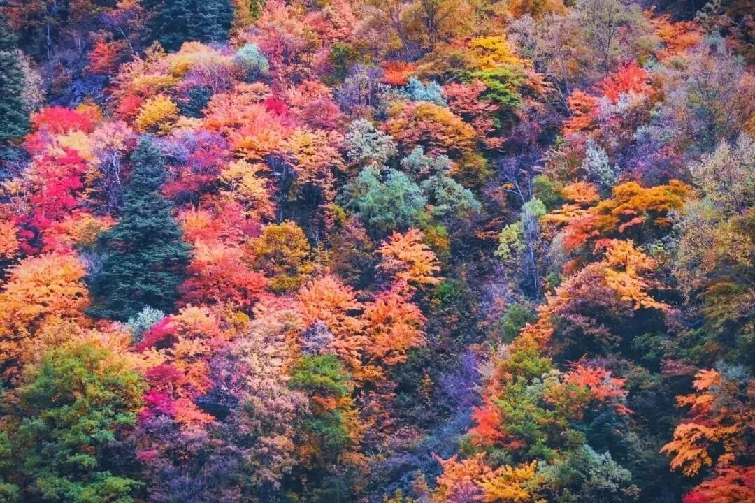 不到奶子沟,便不算真正识得秋日的绚烂。那一山接着一山的斑斓,洋洋洒洒绵延八十里,随手一拍就是一幅五彩画卷