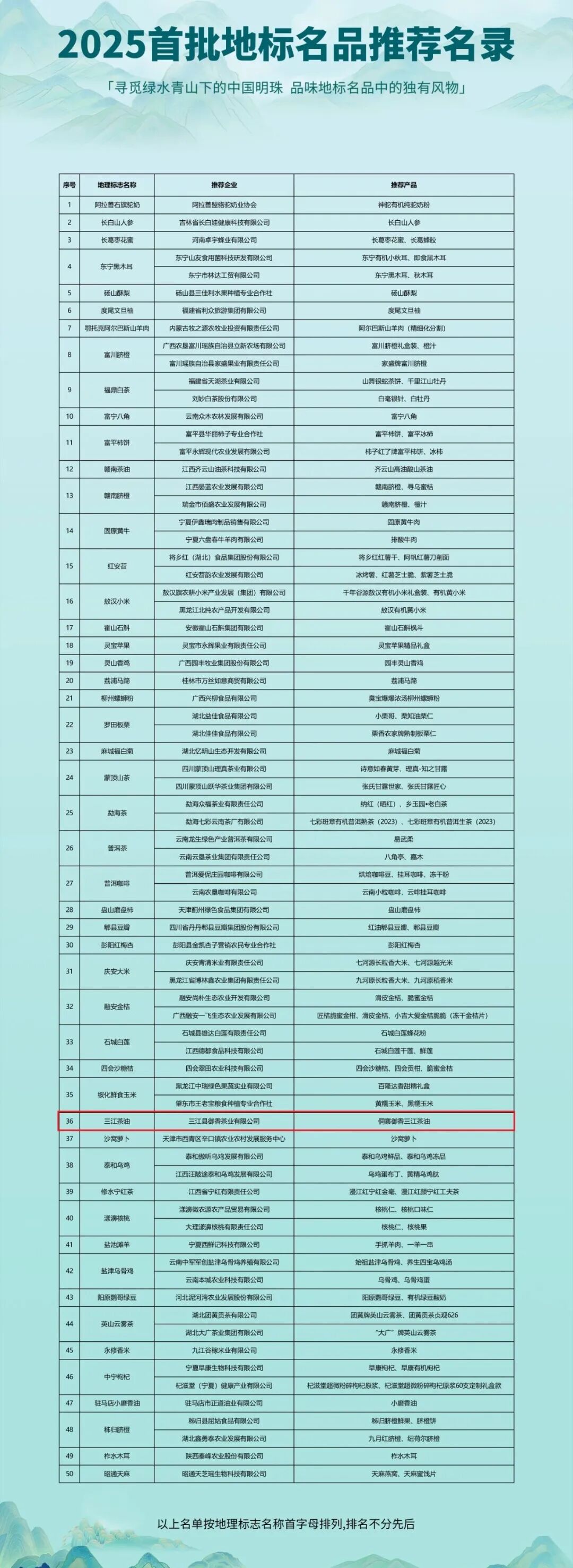 三江茶油上榜2025首批地标名品推荐名录