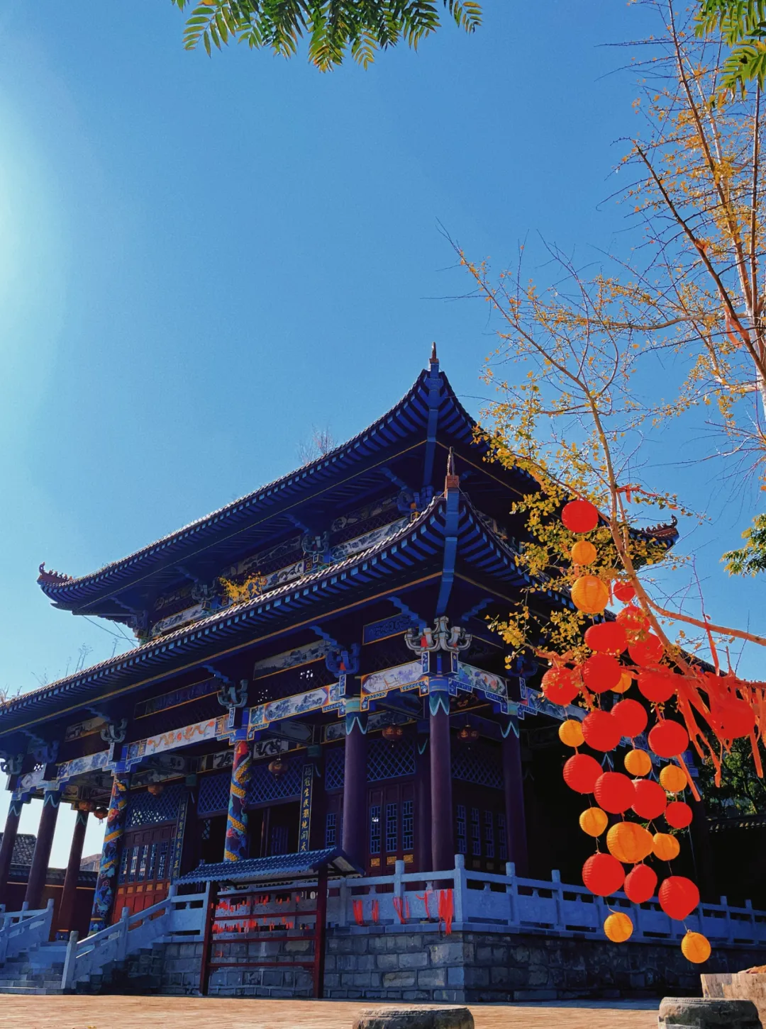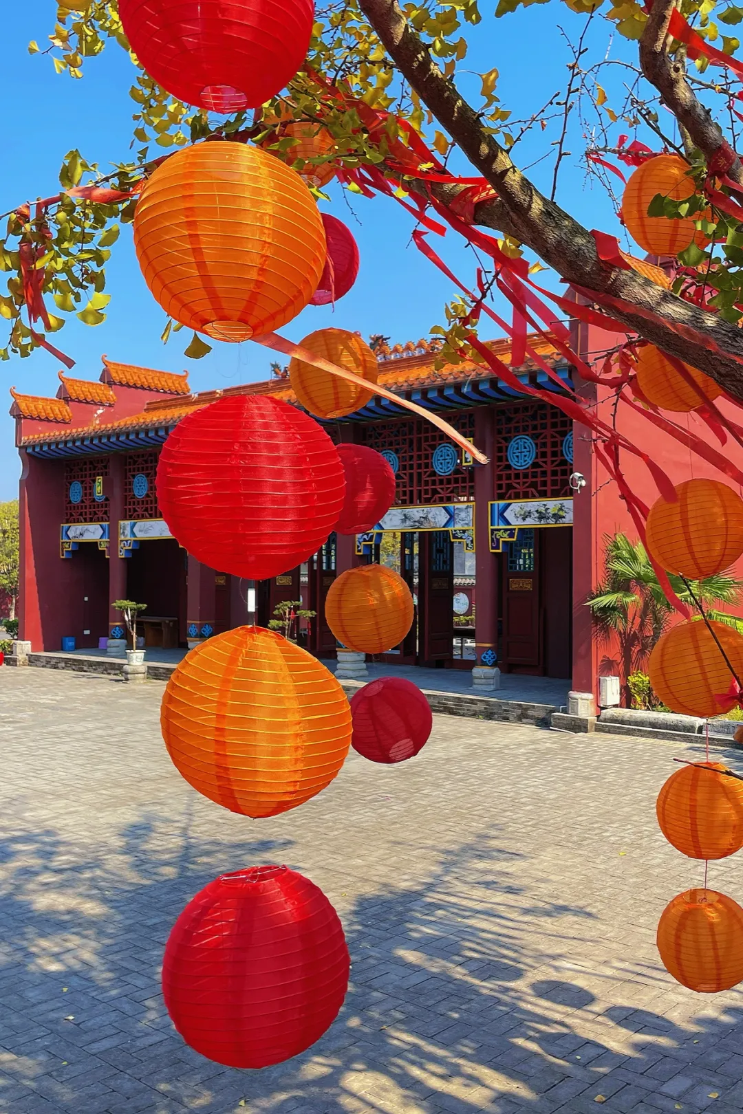 文庙中悬挂着的一盏盏灯笼,