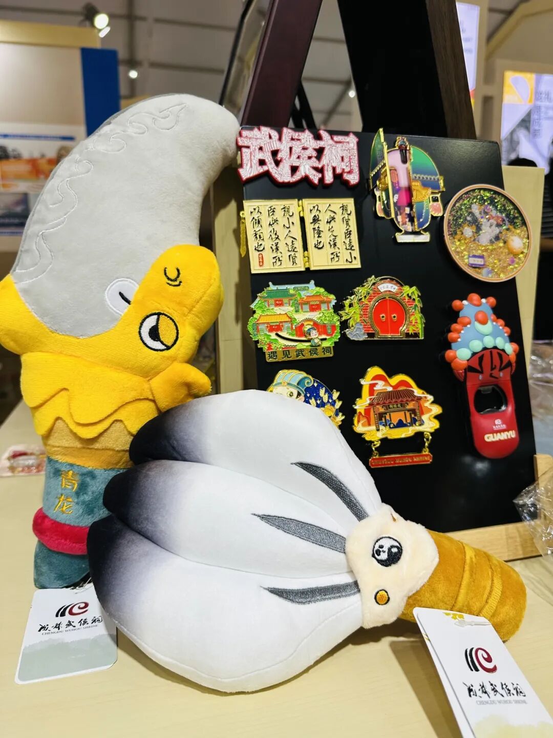 武侯祠博物馆的文创产品也在此次展会上大放异彩。以“青龙偃月刀”毛绒公仔、“扇纶巾杯”、“金碧武侯祠金箔画”等为代表的博物馆文创产品,巧妙地将三国文化与现代设计结合,成为文化传播的新潮流。目前,成都武侯祠博物馆研发的文创产品共有百余类2000余款。今年新开业的“丞相咖啡”自主品牌店更是为观众提供了文旅消费的新选择。