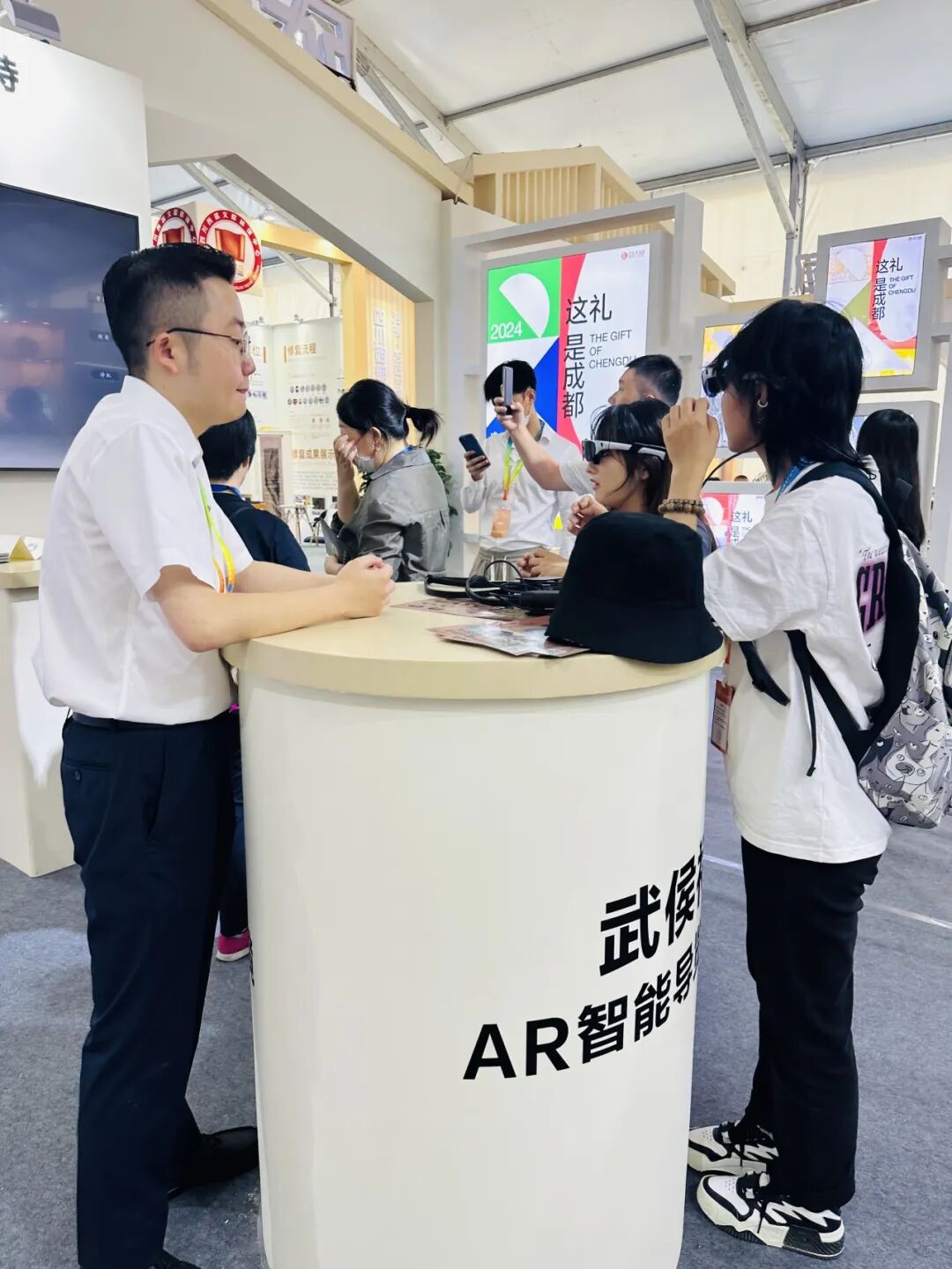 随着科技的不断进步,武侯祠博物馆也在探索创新的文化体验方式。AR智能眼镜导览服务的推出,使得武侯祠博物馆成为全国首个将AR技术应用于室外景区的博物馆。在“博博会”现场,参观者通过AR眼镜,与远在成都的武侯祠遗址进行跨时空互动,沉浸在三国历史文化氛围中,体验与蜀汉英雄面对面的独特感受。