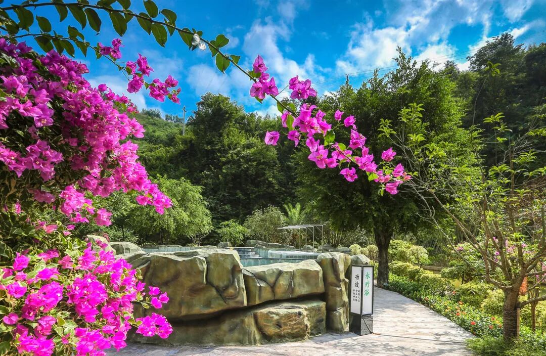 这里风光秀美,四季树木常青,终年花香四溢,群山环抱,森林密布,沟涧纵横,山泉潺潺不息,负氧离子达到了每立方厘米空气中有三万到六万个,是南宁市目前规模最大、质量最高的环保低碳大型生态观光产业。
