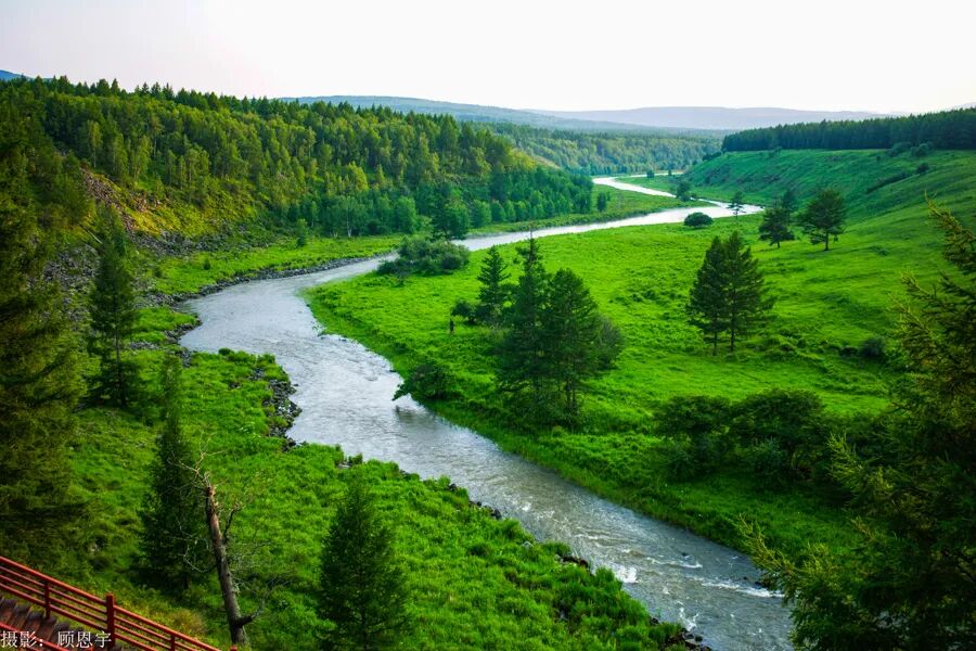 不冻河在夏天树木郁郁葱葱,绿草茵茵,群牛结伴,河水蜿蜒流淌,景色清新治愈,漂流清凉舒爽。