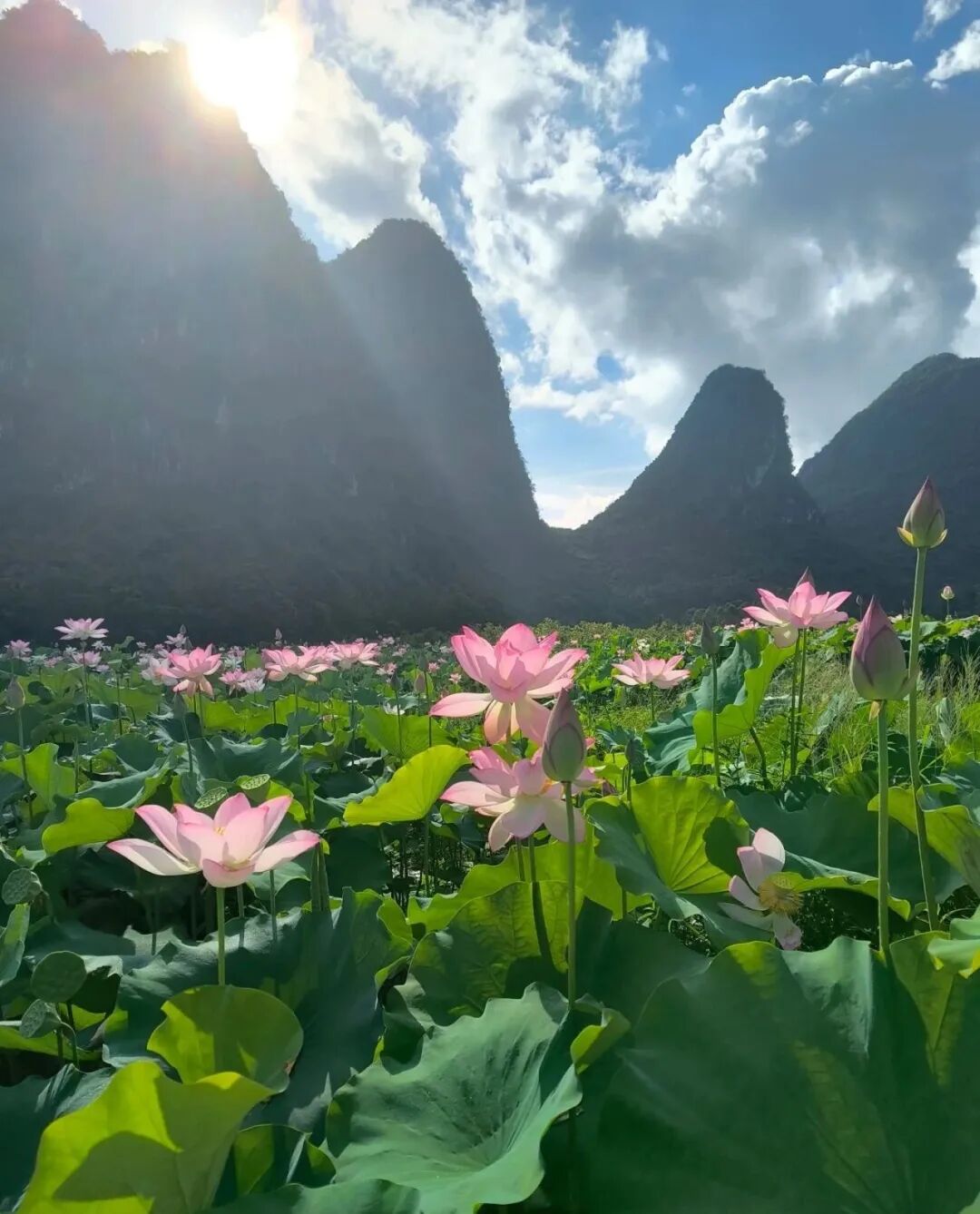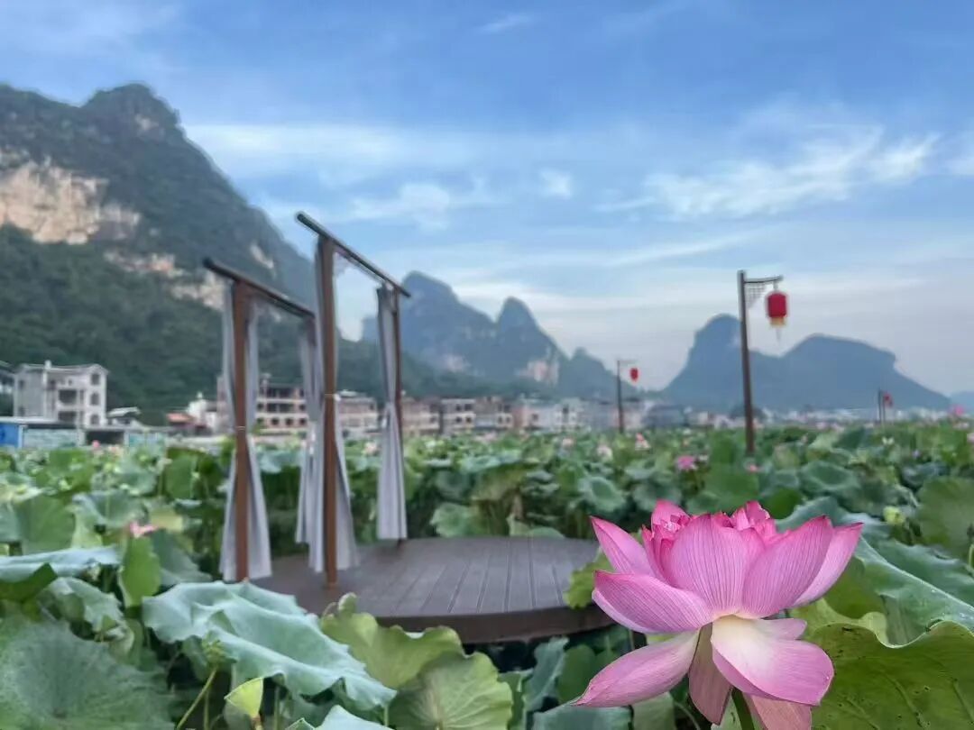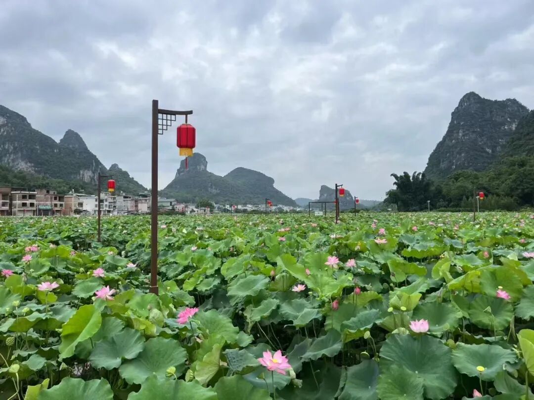 在荔浦市区约4公里处的五里村木鱼屯,为秋日的荔浦增添了一抹清新淡雅的色彩。层层叠叠的荷叶如绿伞般铺展在水面上,微风吹过,荷叶轻轻摇曳,发出沙沙的声响。粉色、白色的荷花在荷叶间亭亭玉立,有的含苞待放,宛如羞涩的少女;有的肆意绽放,尽显婀娜身姿。风过时,花叶一同舞动,仿佛无数仙子在水面翩翩起舞,散发出阵阵清幽的荷香,让人心旷神怡。