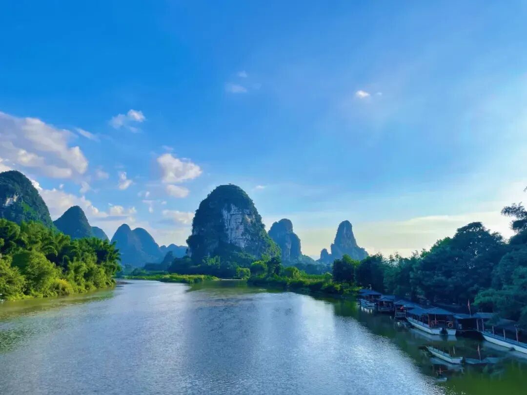 荔江湾景区位于桂林市漓江下游荔浦市,因漓江支流 — 荔江奇特的原生态喀斯特地貌而得名。泛舟于荔江之上,清风拂面,带来丝丝清凉。河水清澈见底,倒映着两岸的青山绿树,仿佛一幅流动的山水画卷。