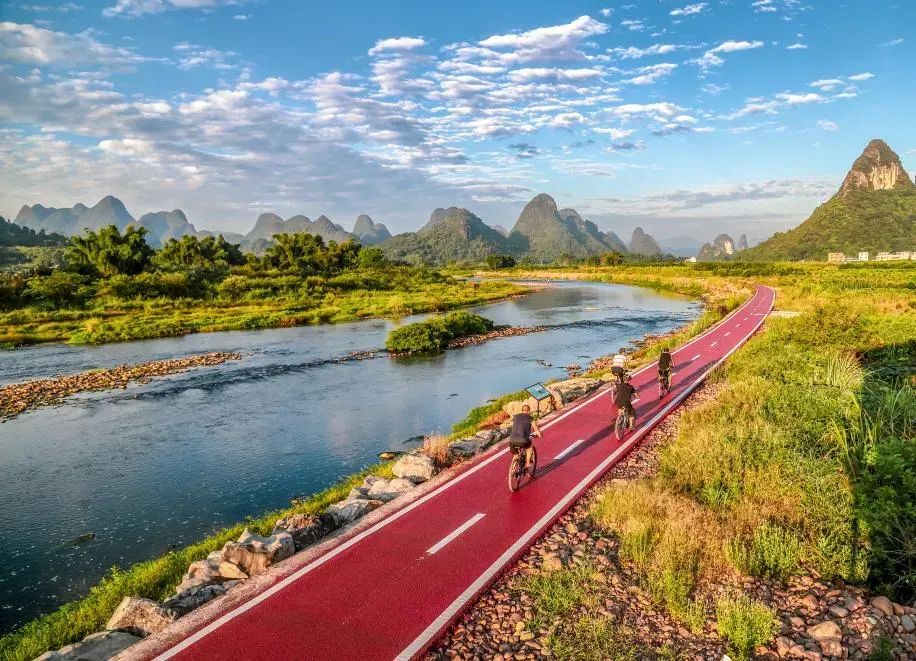 景区位于桂林市荔浦市青山镇,与荔浦城区接壤,这里山水相依,洲岛绿地错落有致,乡村田园风光旖旎,生物景观丰富多样。平台观景处与驿站休憩点,分布在景区各处,您可以在此驻足,聆听竹径风声,欣赏荔江两岸的秀丽风光。滨水公园内花草掩映,精致巧妙;铁索桥上凭栏远眺,荔江湿地的旖旎风光尽收眼底。荔江两岸的狗尾山、绿水山、石墙山、大湾山、杨家山自北向南矗立,连绵起伏,构成了荔江湿地天然的生态屏障,为您在秋日里提供了一处清凉的自然绿洲。
