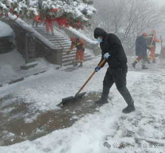 近日,泰山景区迎来雨雪天气,为确保游客安全,公司积极响应上级号召,