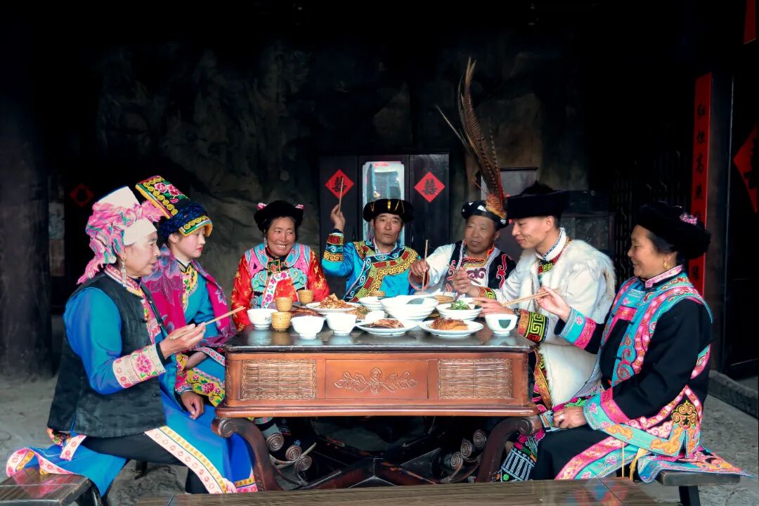 盛饭由主炊妇女担任,盛好后,先捧给长辈,后送给男人,最后给女的。切肉则是男人的专职,女人是绝对不准的。据说是因为屠宰家畜与祭祀有关,必须由男人来干。