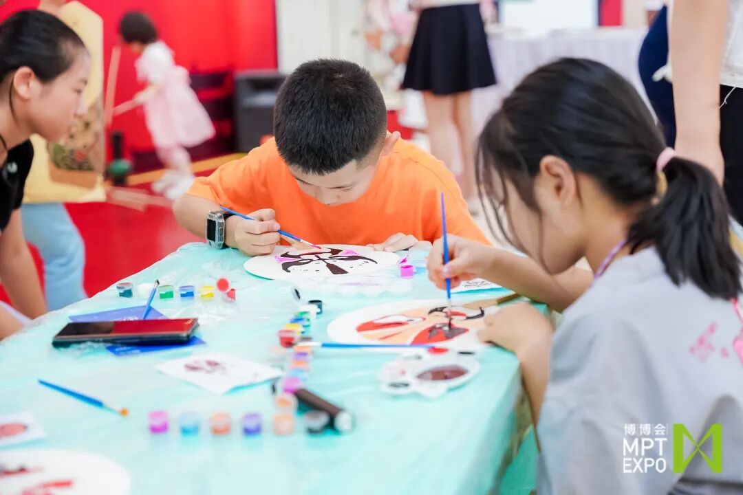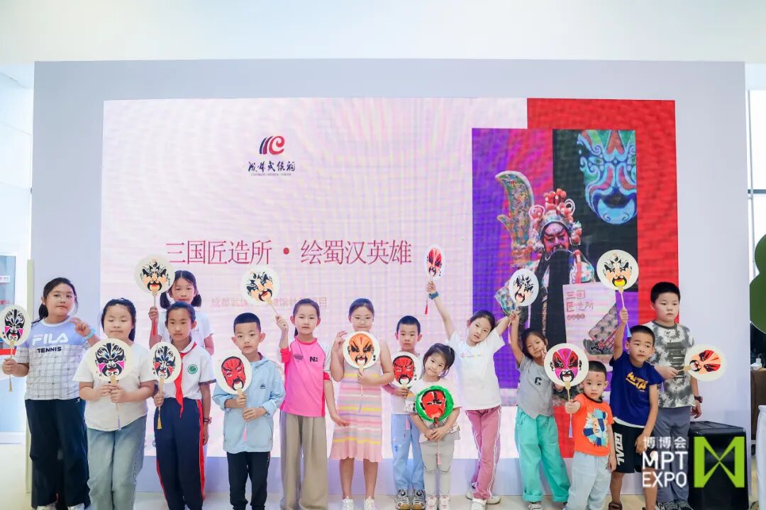 “三国匠造所·绘蜀汉英雄”课程以传统戏曲为载体,以蜀汉英雄故事为脉络,寓教于乐,让青少年儿童在动手绘制蜀汉英雄脸谱扇面的过程中,切身感受戏曲艺术的丰富内涵与三国文化的多彩魅力。8月23日至25日,共有上百名观众来到“博博会”现场的少年儿童教育活动专区,饶有兴致地参与课程互动,在社教老师的指导下完成脸谱扇面绘制。