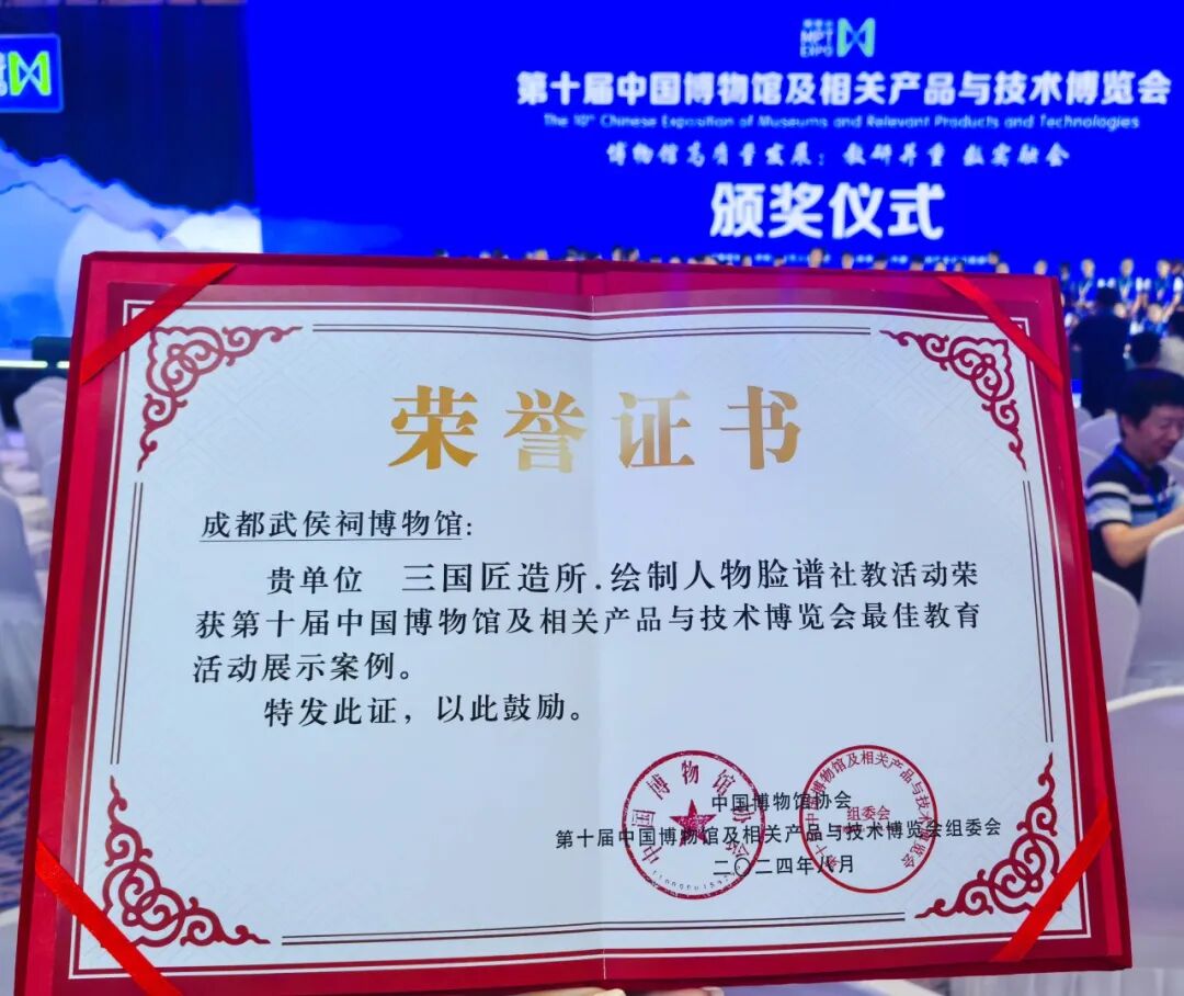 8月26日,经评选,“三国匠造所”喜获中国博物馆协会、第十届“博博会”组委会颁发的“最佳教育活动展示案例”奖项。