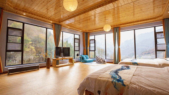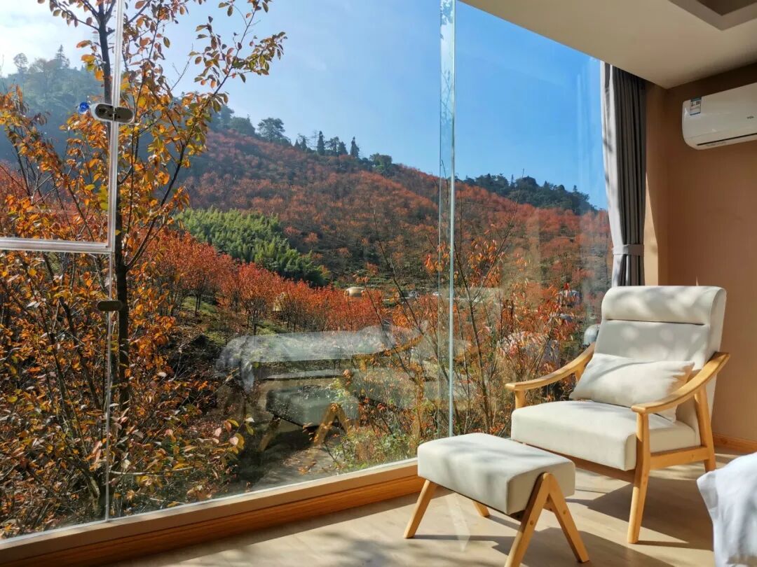 民宿的全景落地窗视野超佳,晨起看薄雾漫过层林,午后在露台上晒暖,夜枕着虫鸣入睡,连梦都是清甜的。