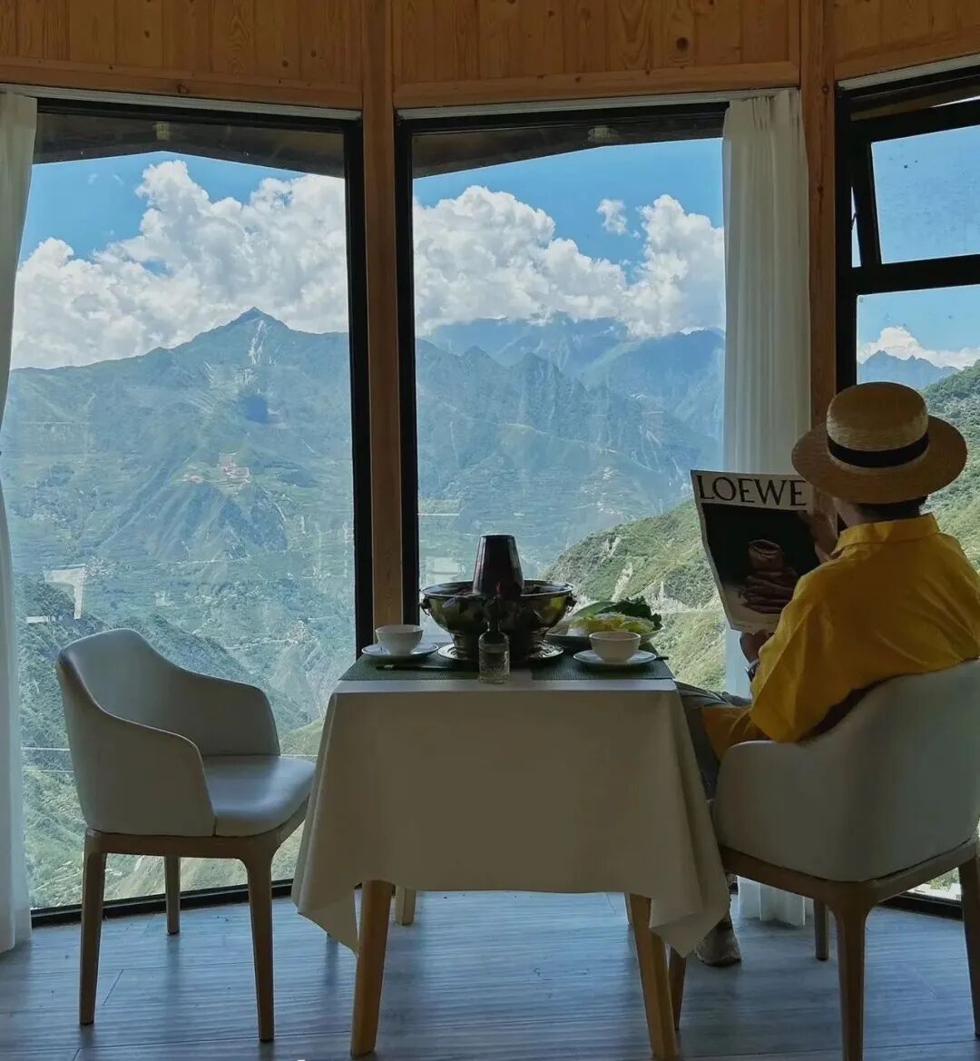 光和云朵民宿坐落于在岷江大峡谷的山巅之上,推开门,壮阔的峡谷画卷便展现在眼前,整座民宿都像飘在云端。