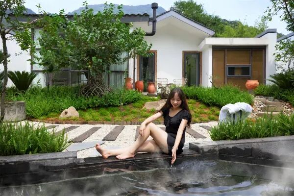 民宿的私汤也值得体验一番,在40℃的汤池温润中,远眺山野彩林,近赏曲水流觞,好不惬意~