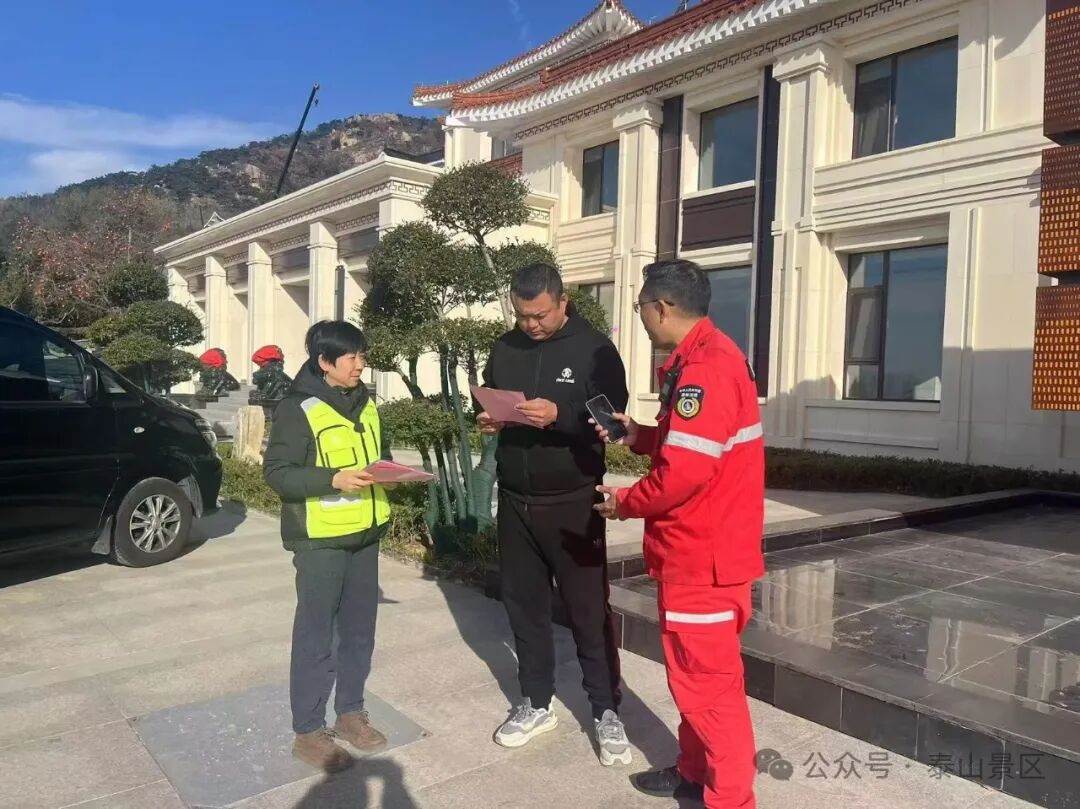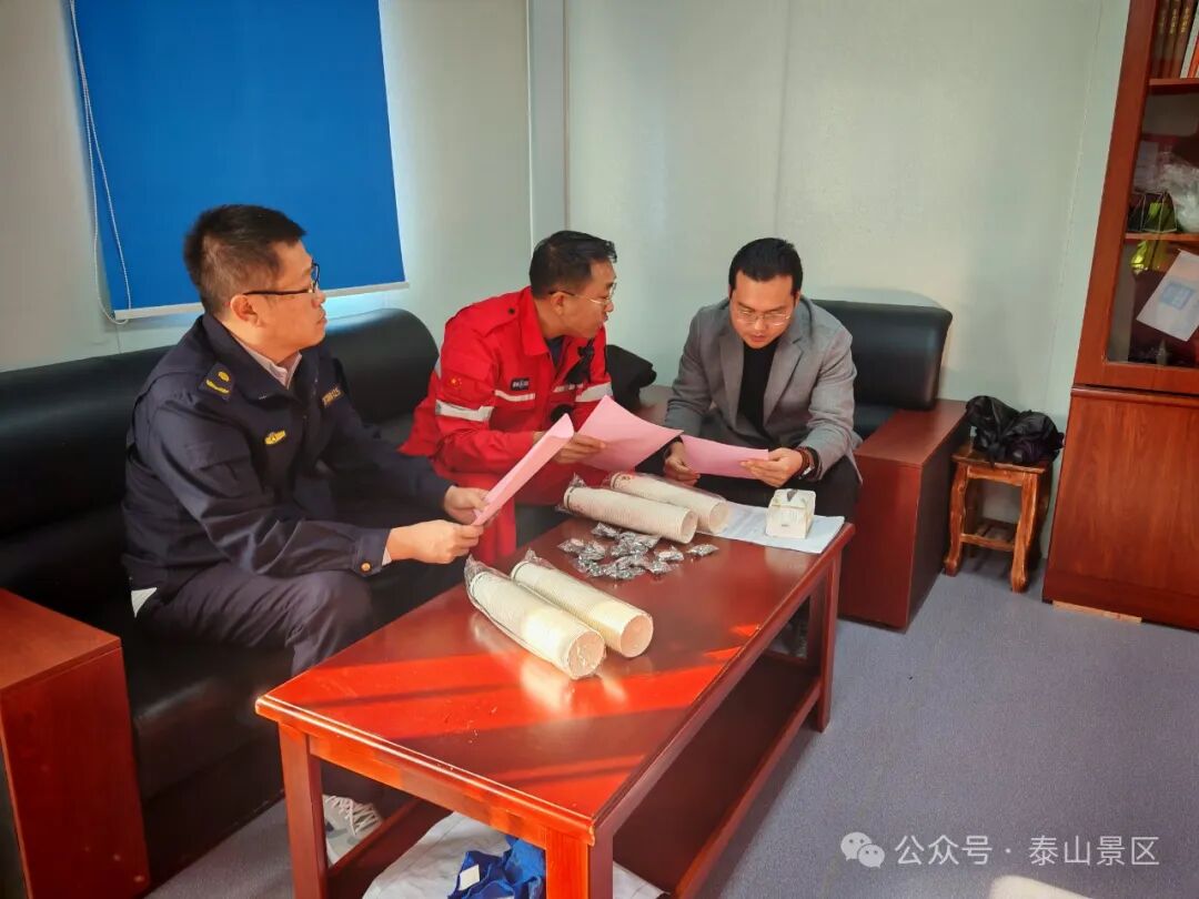 11月30日上午,管理区工作人员走进中国建筑公司及城建投资有限公司,发放了泰安市森林防火通告,省森林防火指挥部“十个严禁”、以及景区森林防火“三严禁、四不准”等内容的明白纸,并向工人发放有防火标识的纸杯、指甲刀等防火宣传品。用身边案例将森林防火的重要性、火灾的危害、森林防火注意事项为工人一一详细讲解。