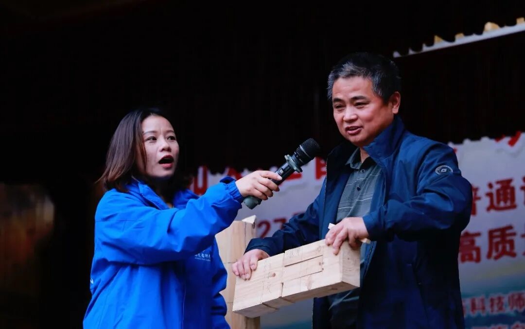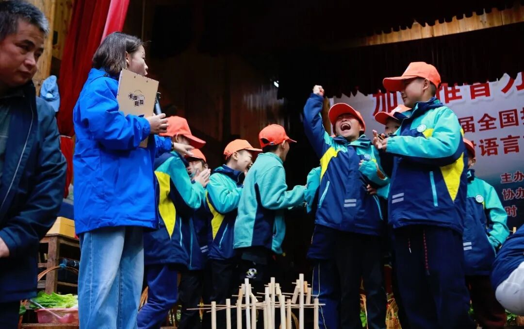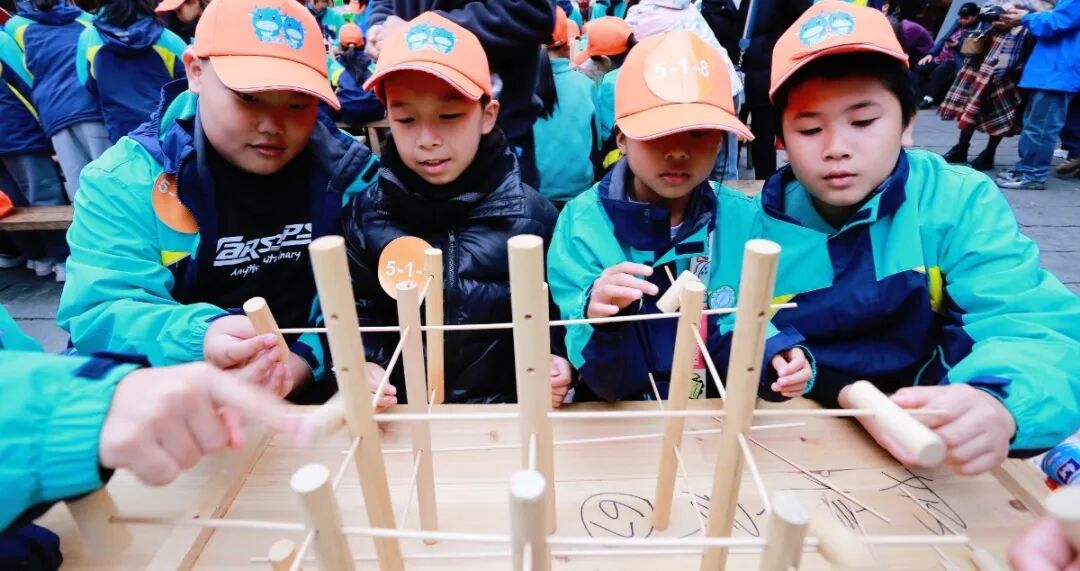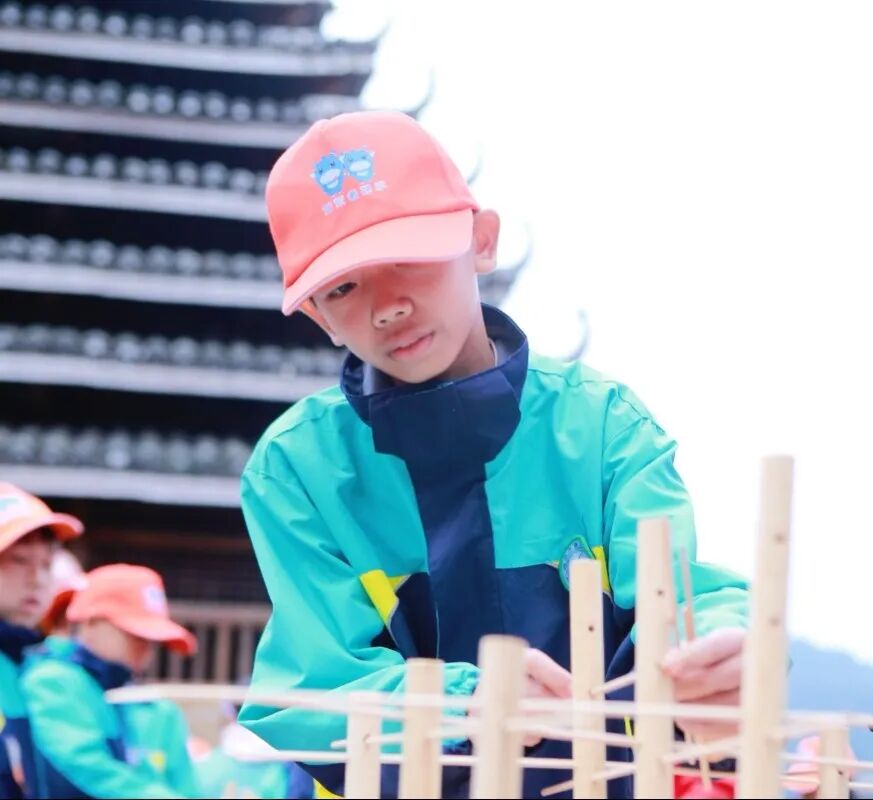 在非遗大师的悉心指导下,同学们分组进行侗族木构搭建比赛。他们小心翼翼地摆弄着手中的木材,尝试着运用所学的技巧,将一根根木头拼接组合。