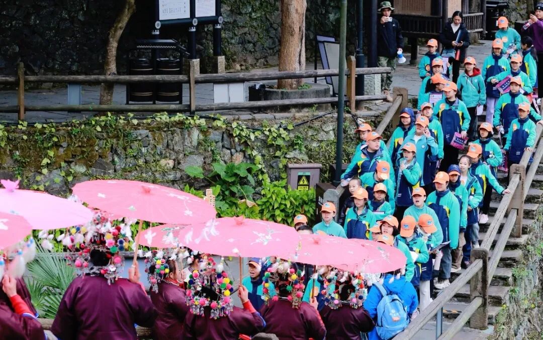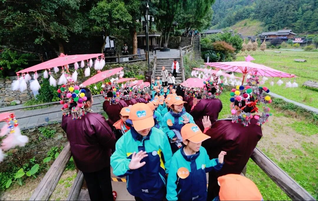 22日清晨,同学们整齐列队,怀着激动的心情踏上了前往三江侗族自治县的旅程。欢声笑语中,同学们抵达了本次研学的第一站——程阳八寨。