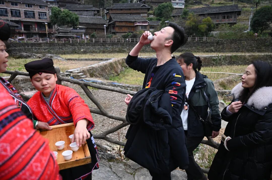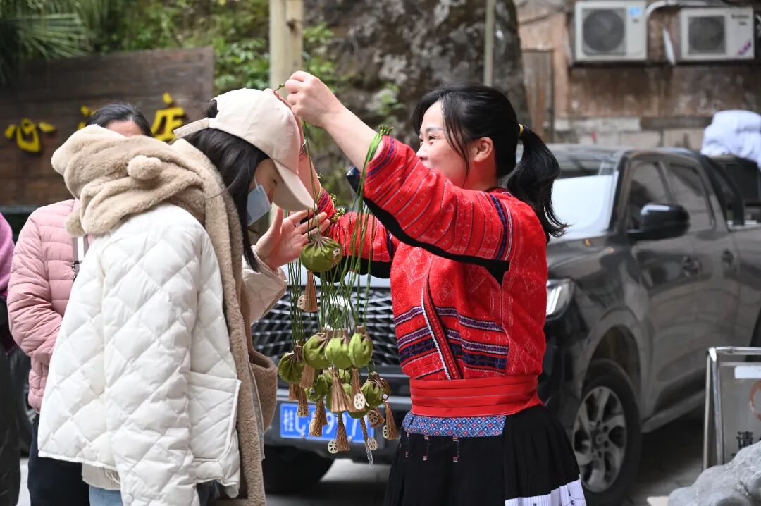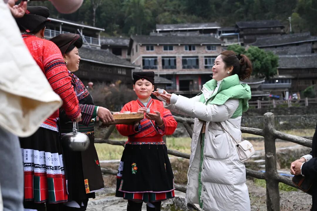 参观少数民族新农村建设,体验红瑶的独特风情,与瑶族同胞们联欢共建。