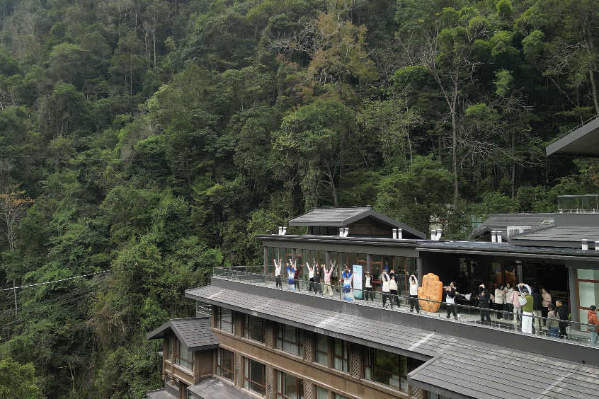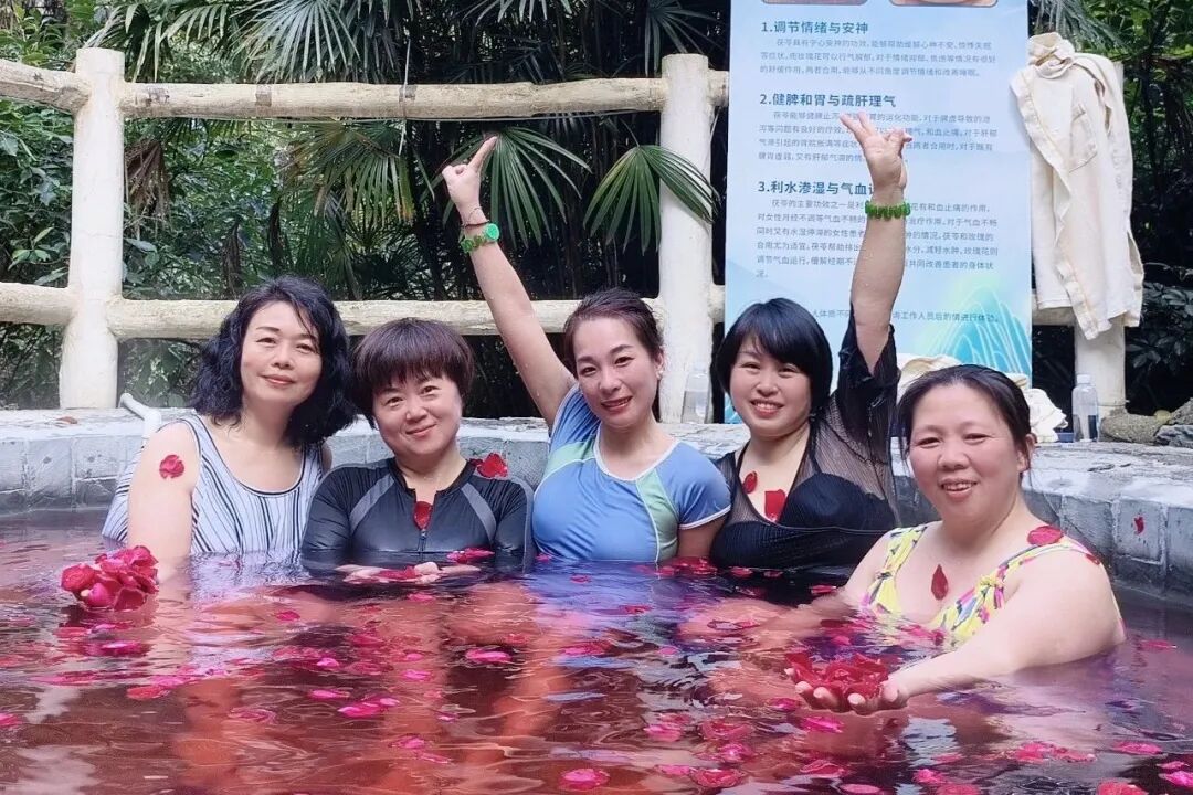 大家在龙胜温泉的幽谷泉池中拂去尘嚣,融入林间溪水,缓解疲惫、舒缓身心。